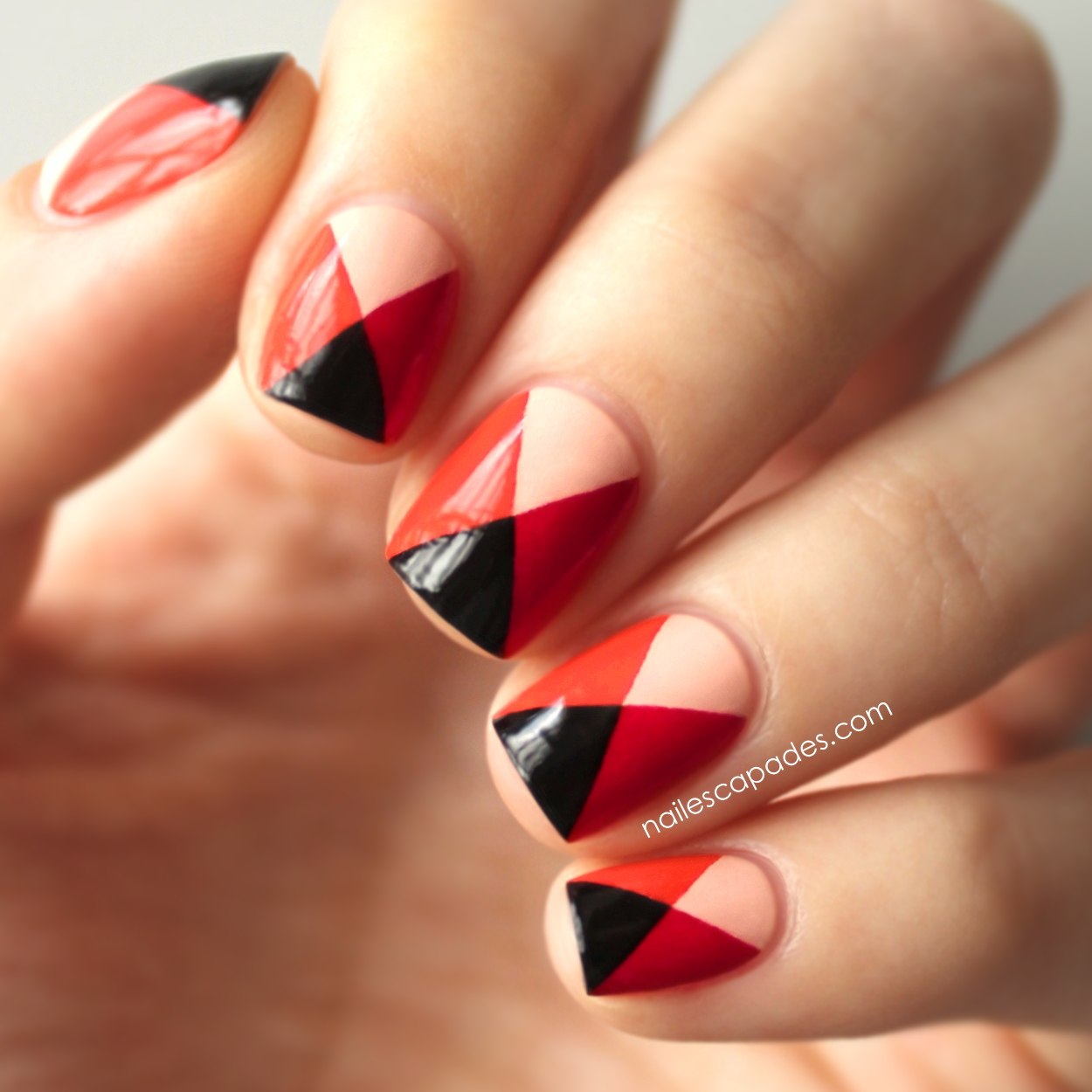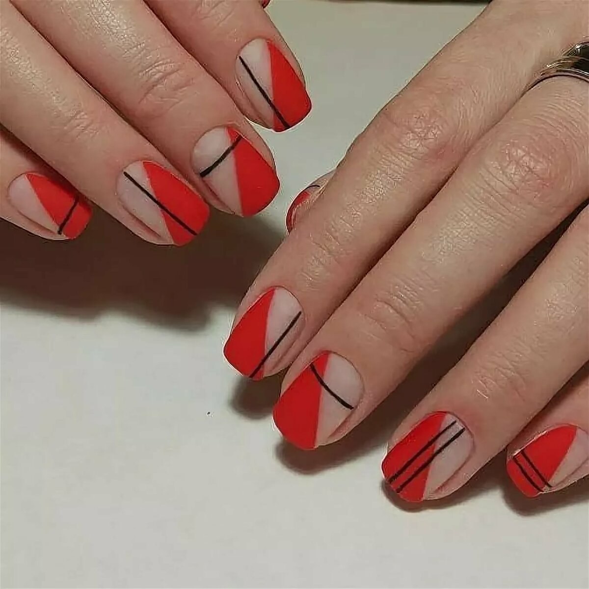Геометрия на красных ногтях