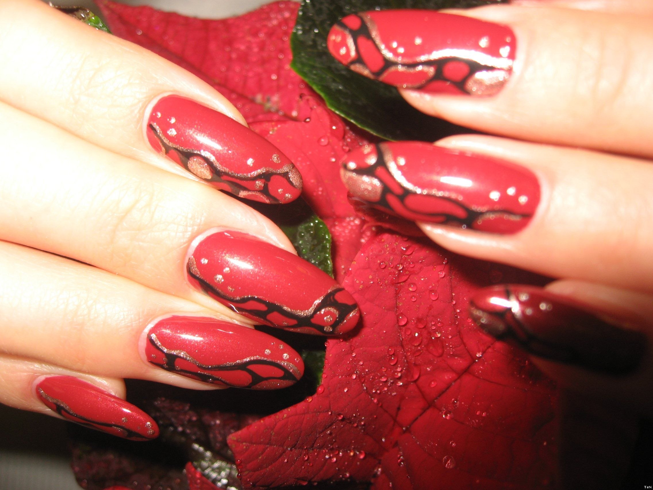 Симметрия на красных ногтях