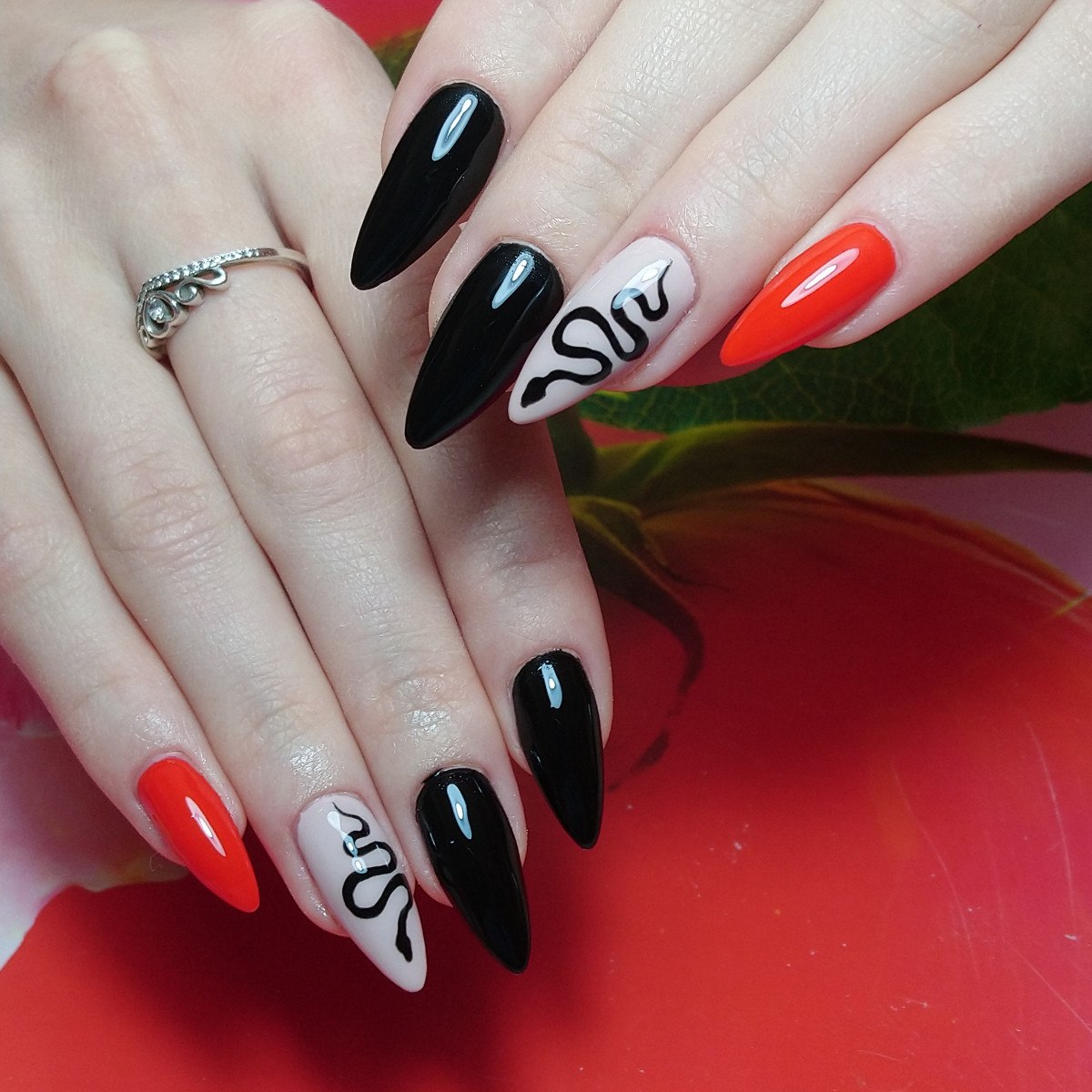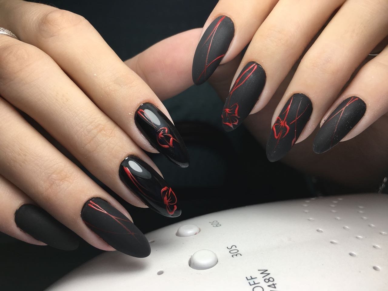 Красно черный маникюр на длинные ногти