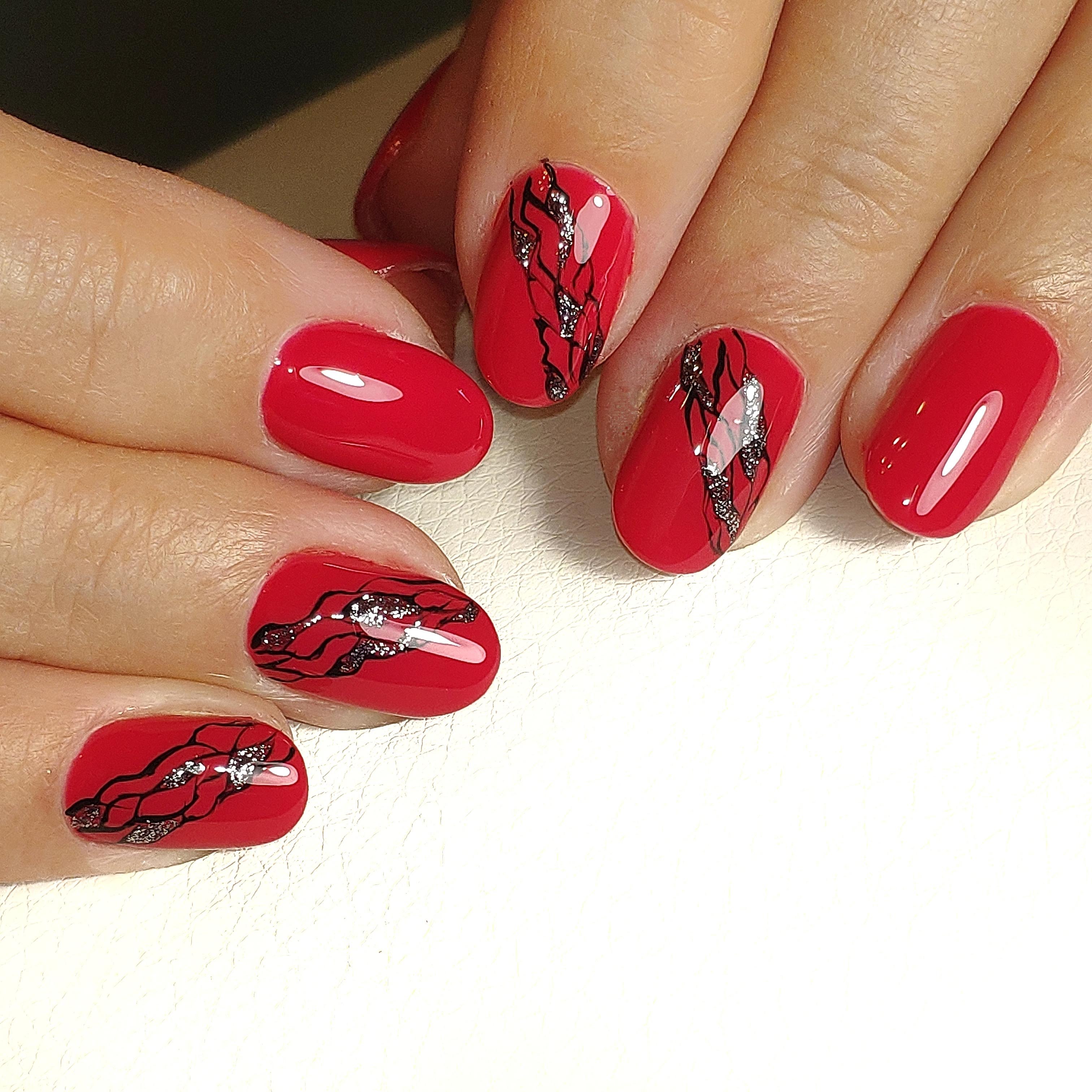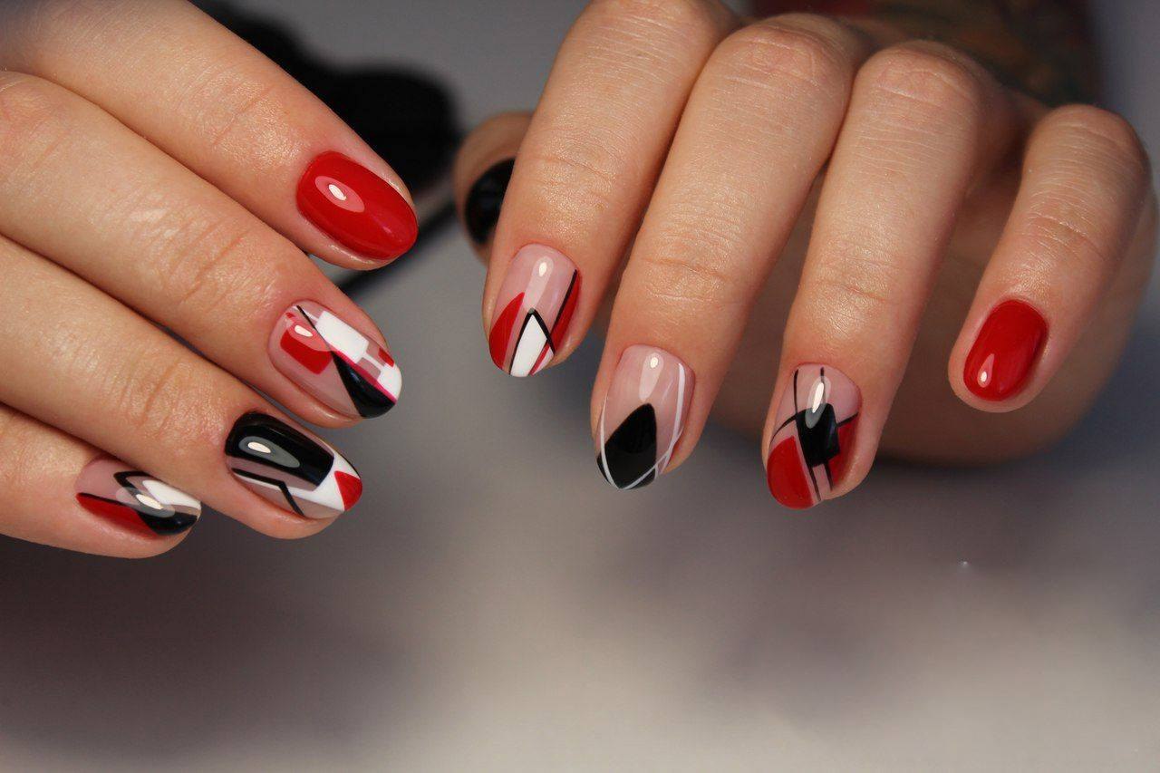Маникюр абстракция с красным цветом