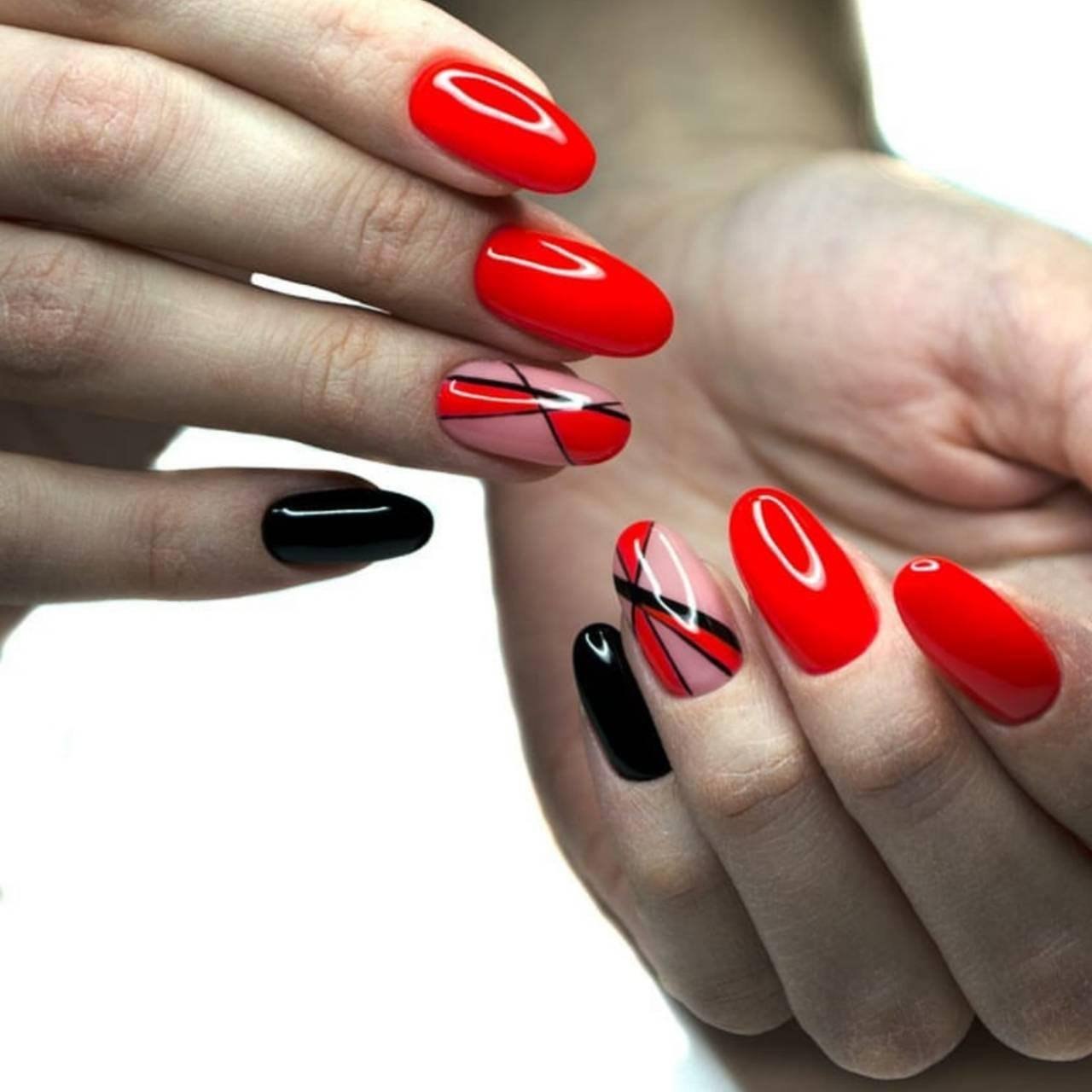 Маникюр красный с черным