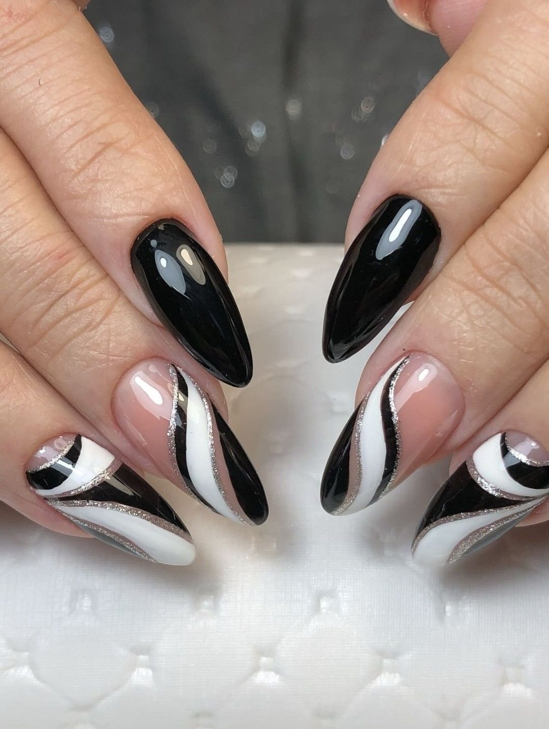Маникюр белый с черным