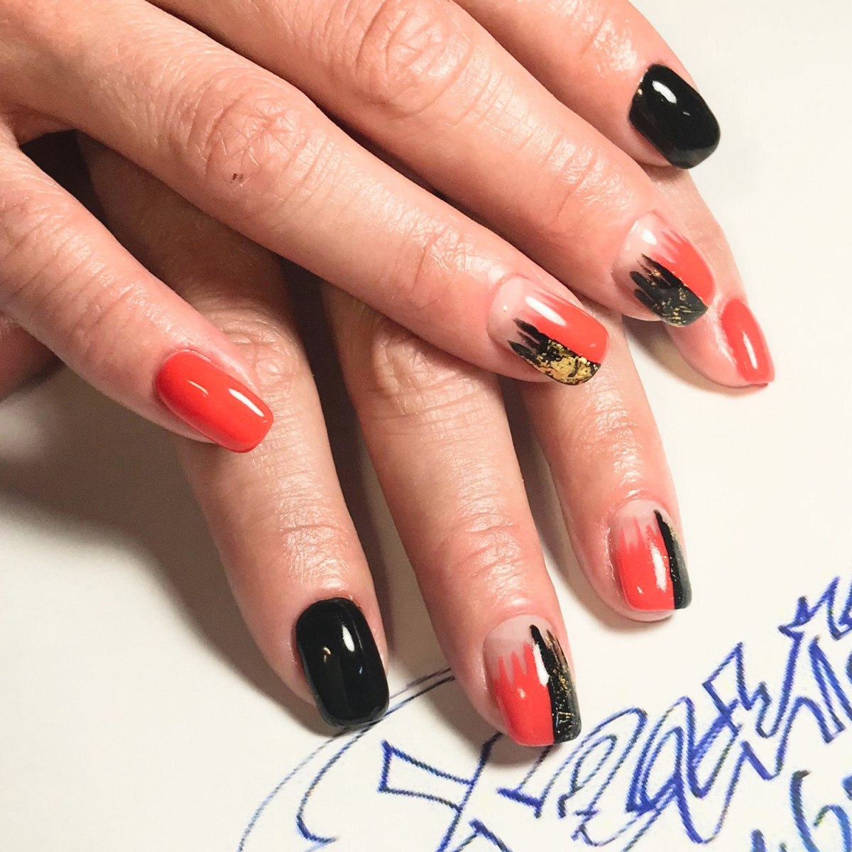 Дизайн ногтей чёрно красный