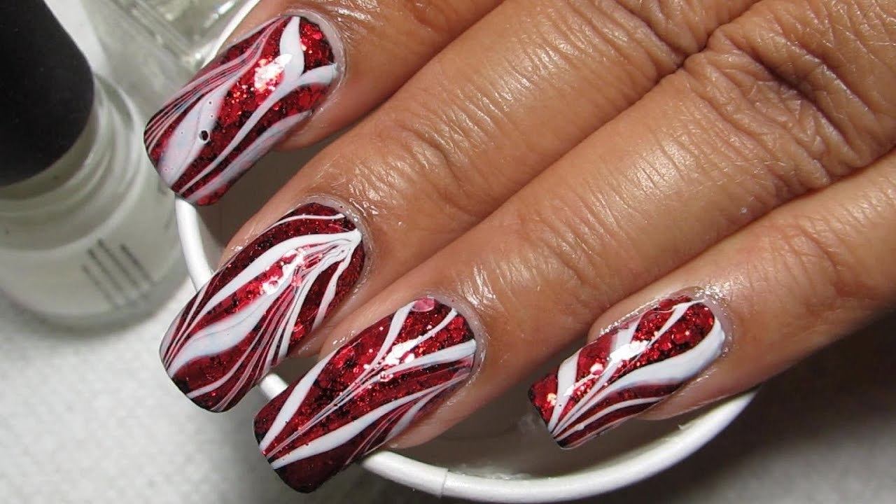 Маникюр черно красный мрамор
