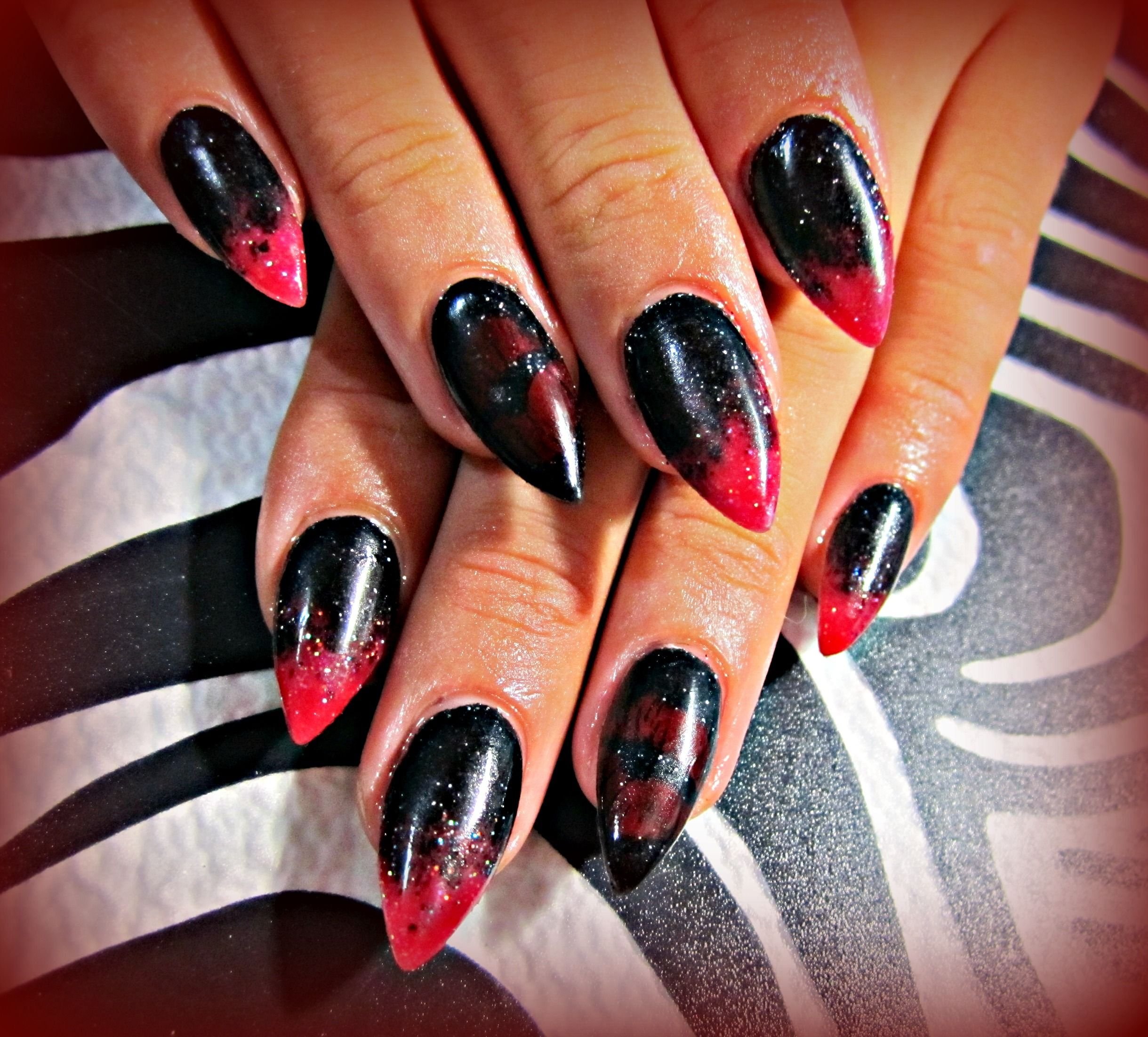 Наращивание ногтей черный с красным