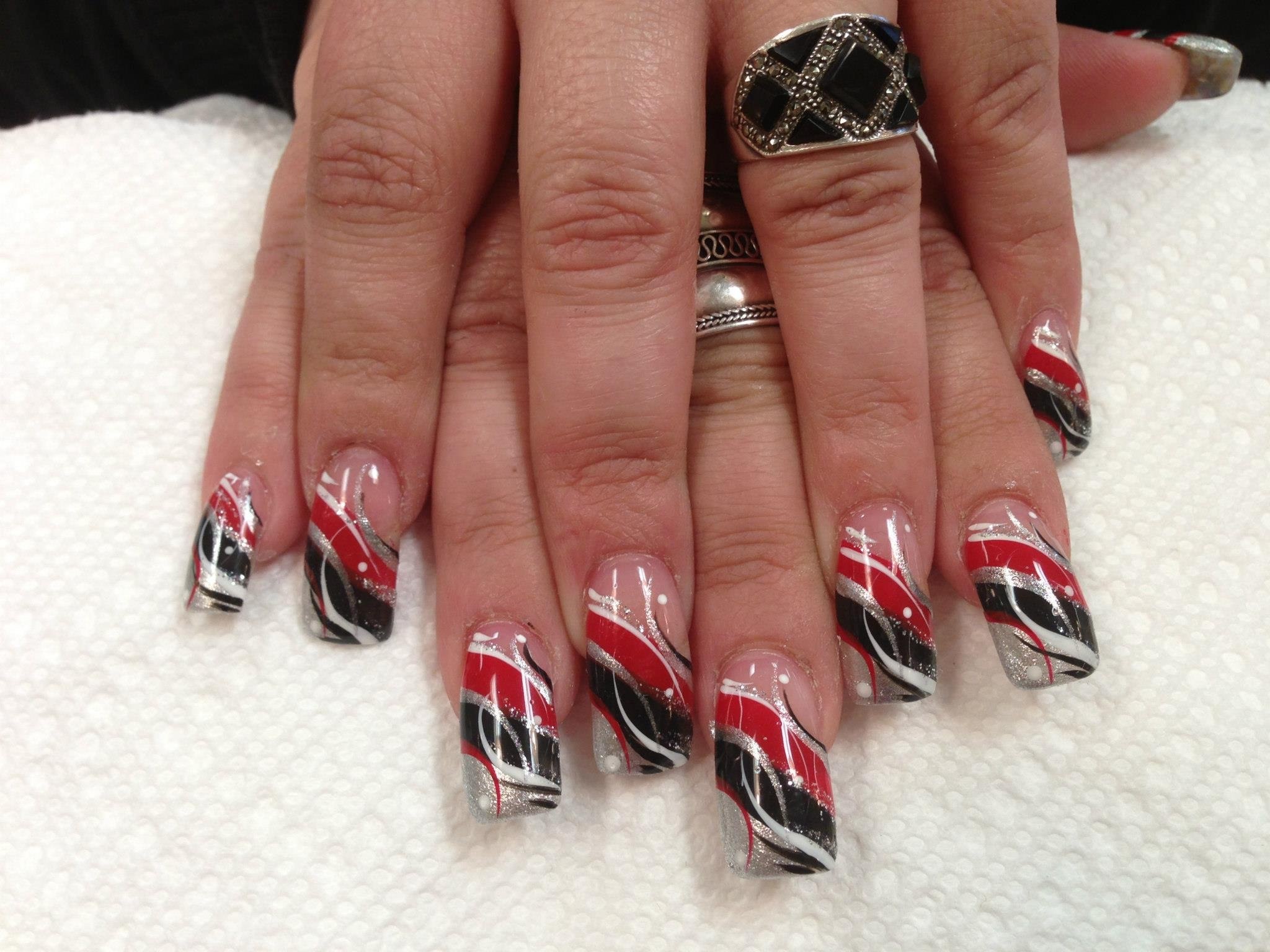 Черно красная абстракция на ногтях (44 фото)