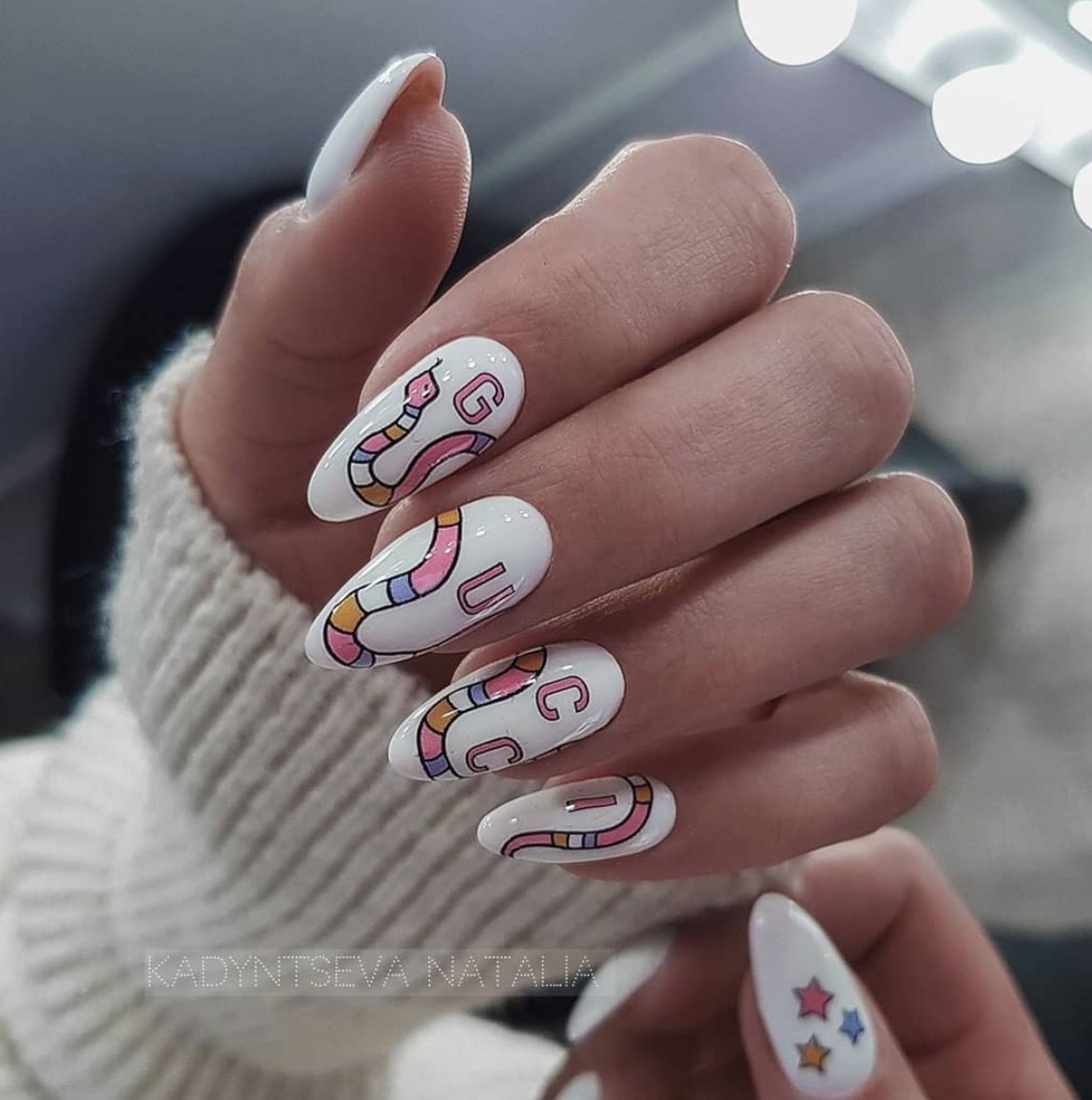 Белые ногти со змеей