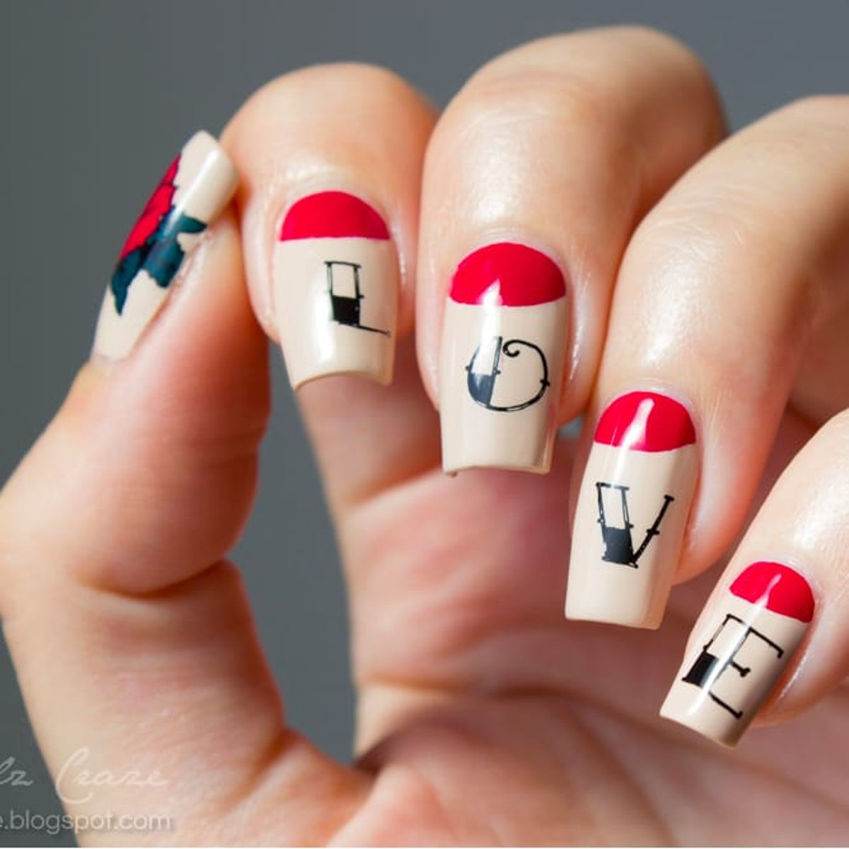 Красные ногти с надписями