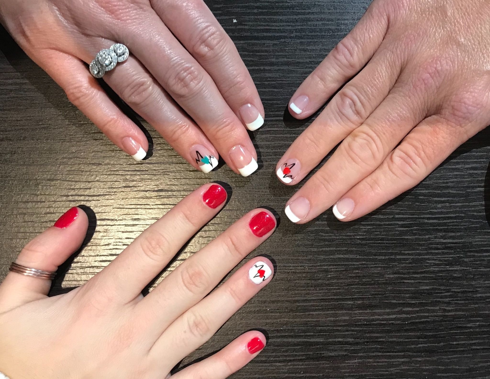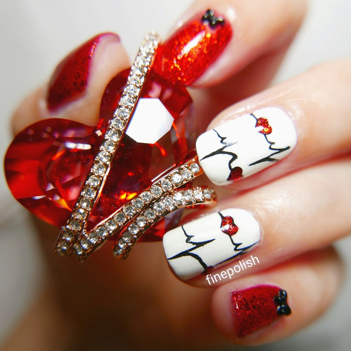 Красный маникюр с кардиограммой