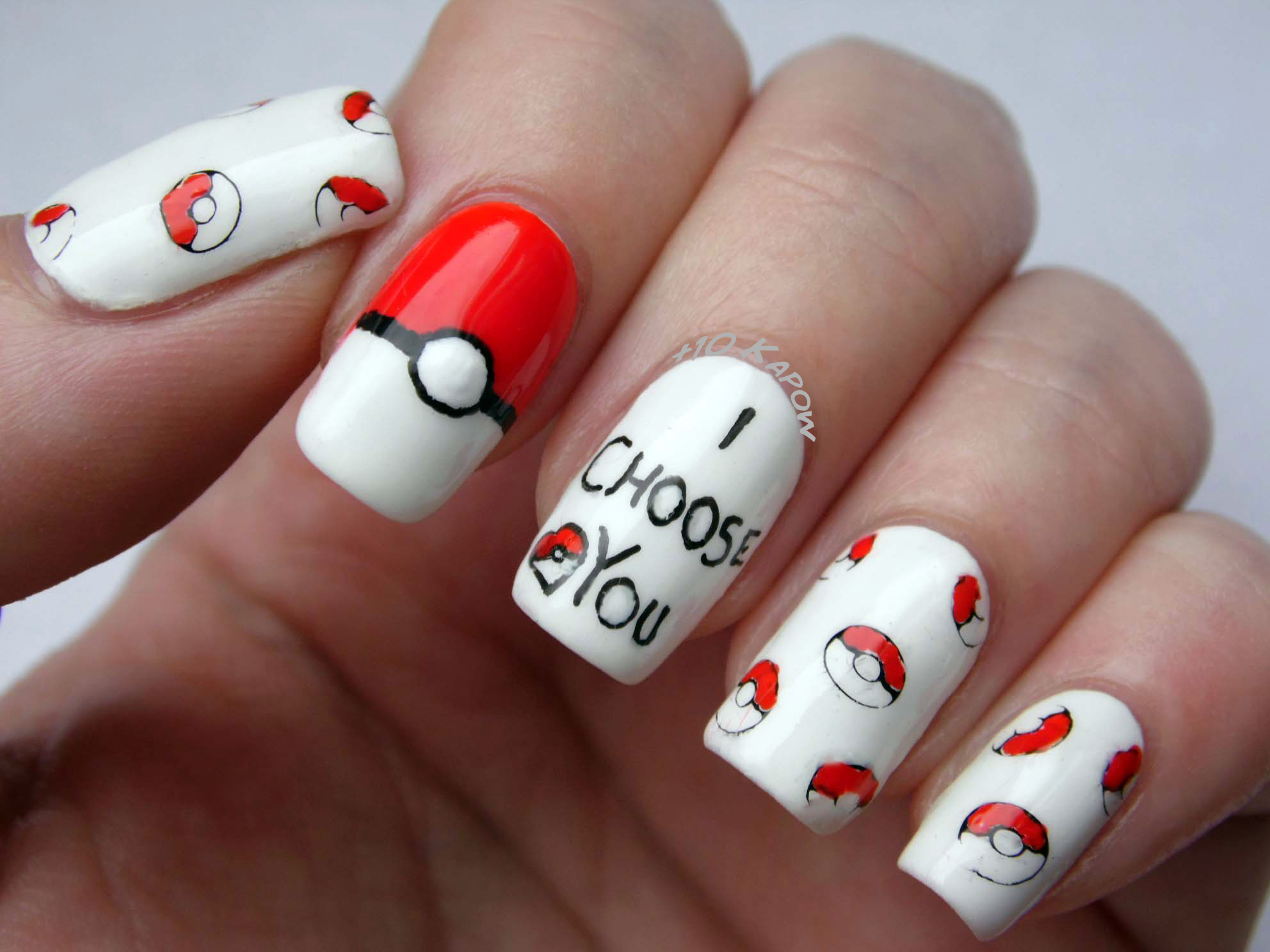 Маникюр белый с покемоном