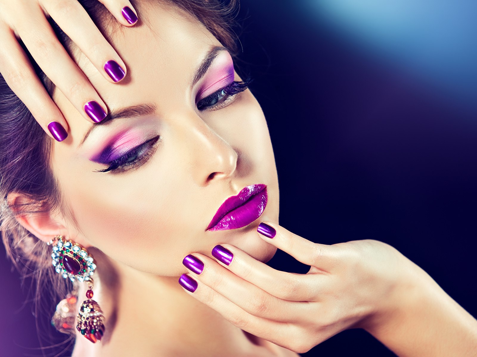 Красивая девушка с макияжем и маникюром