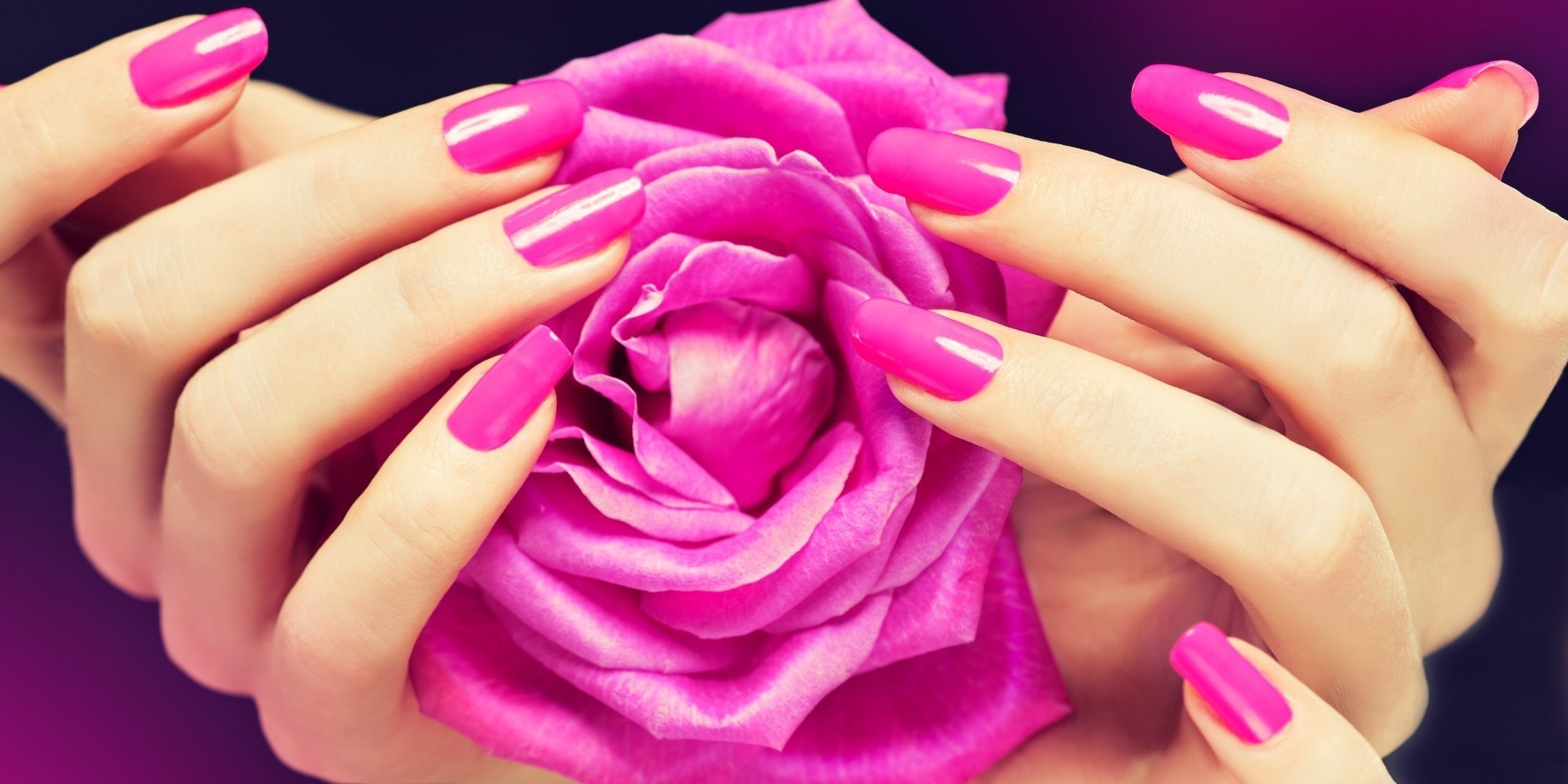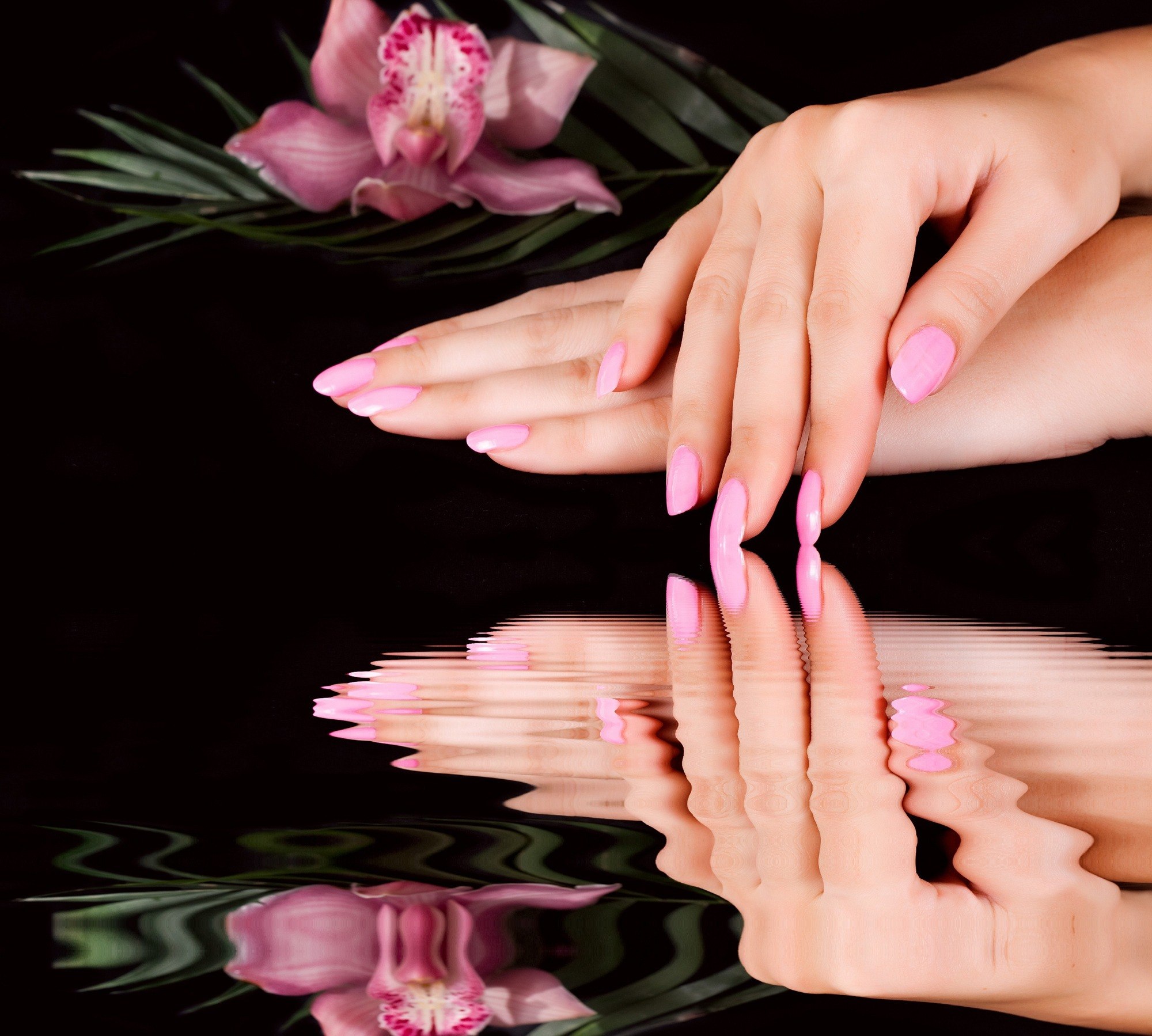 Розовые ногти на черном фоне