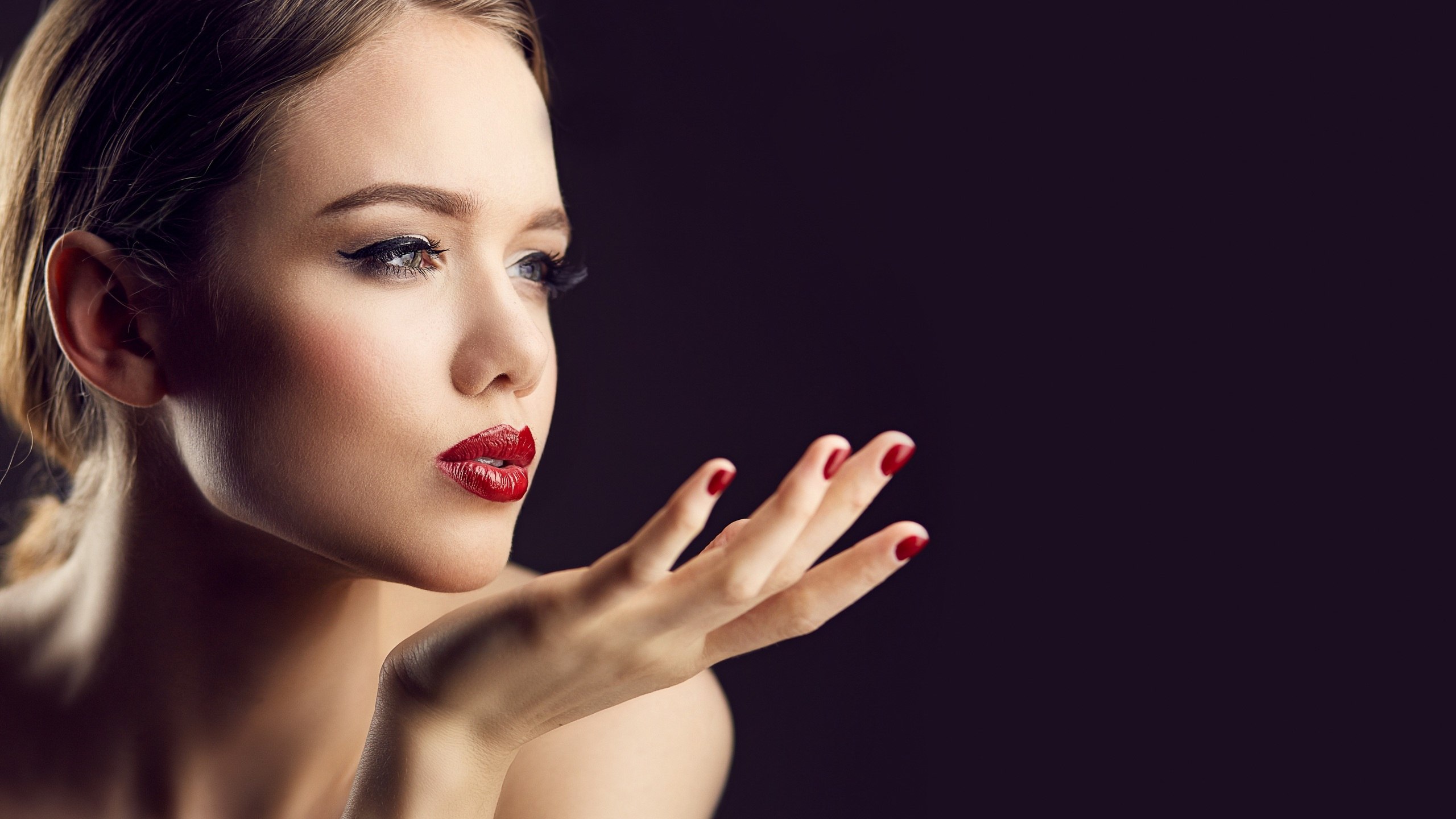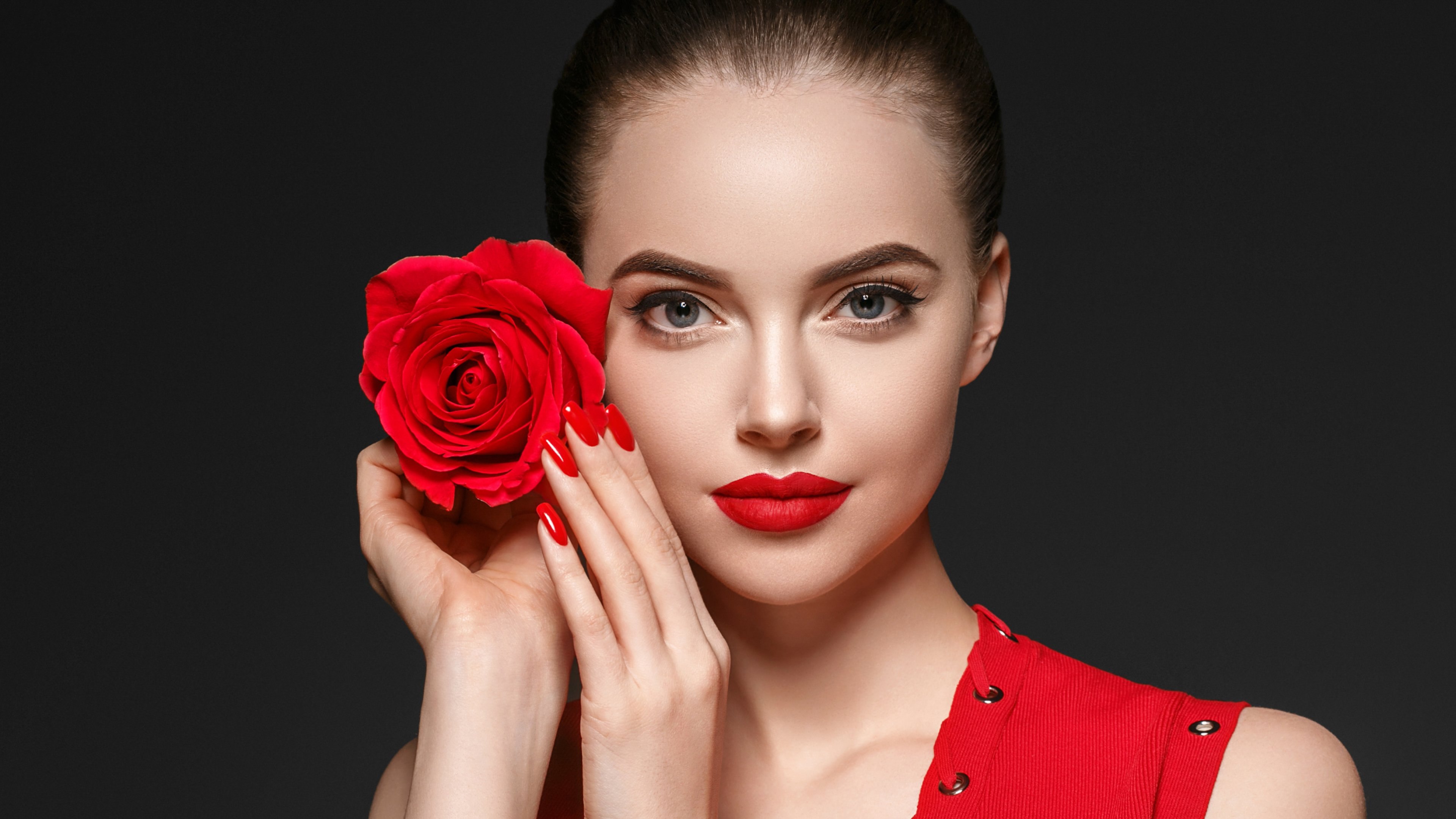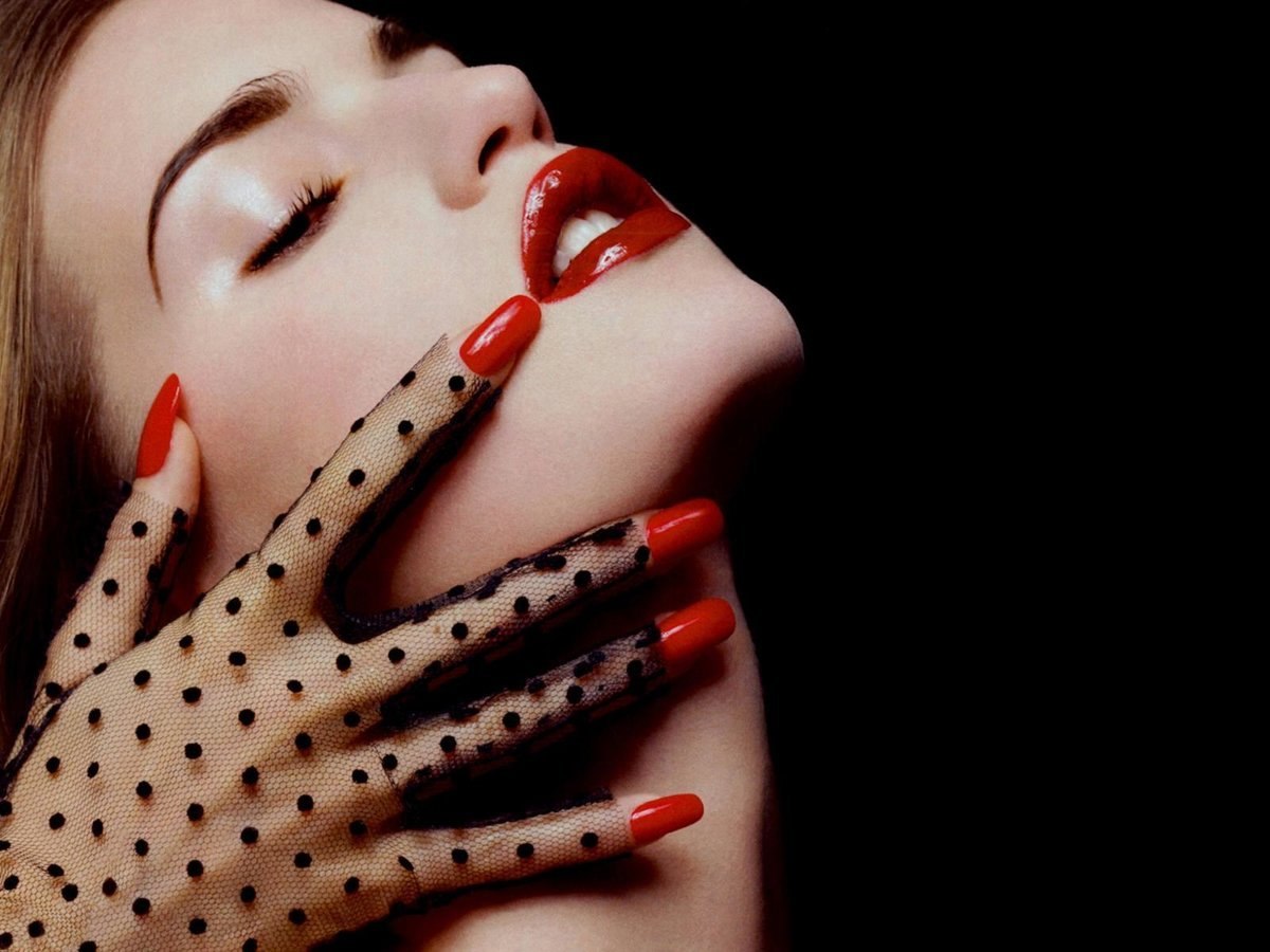 Девушка с красными губами и ногтями