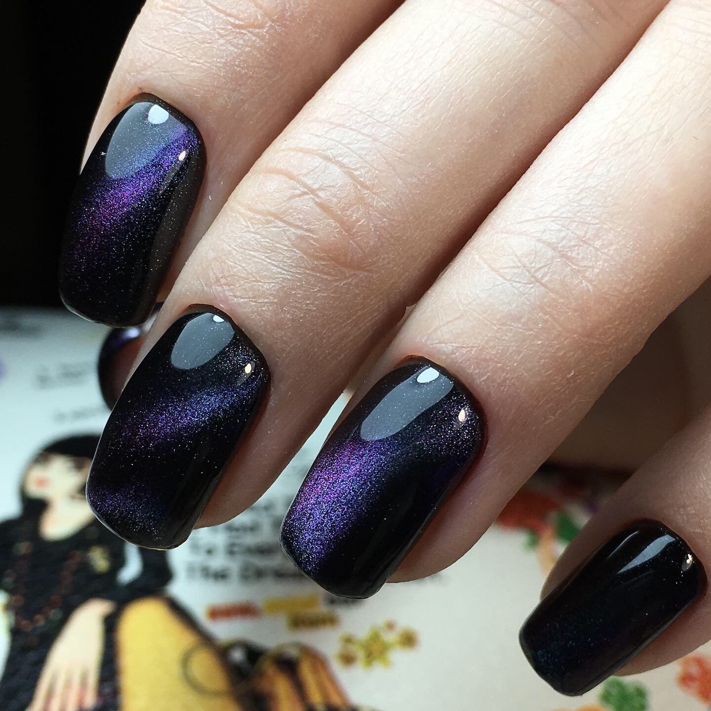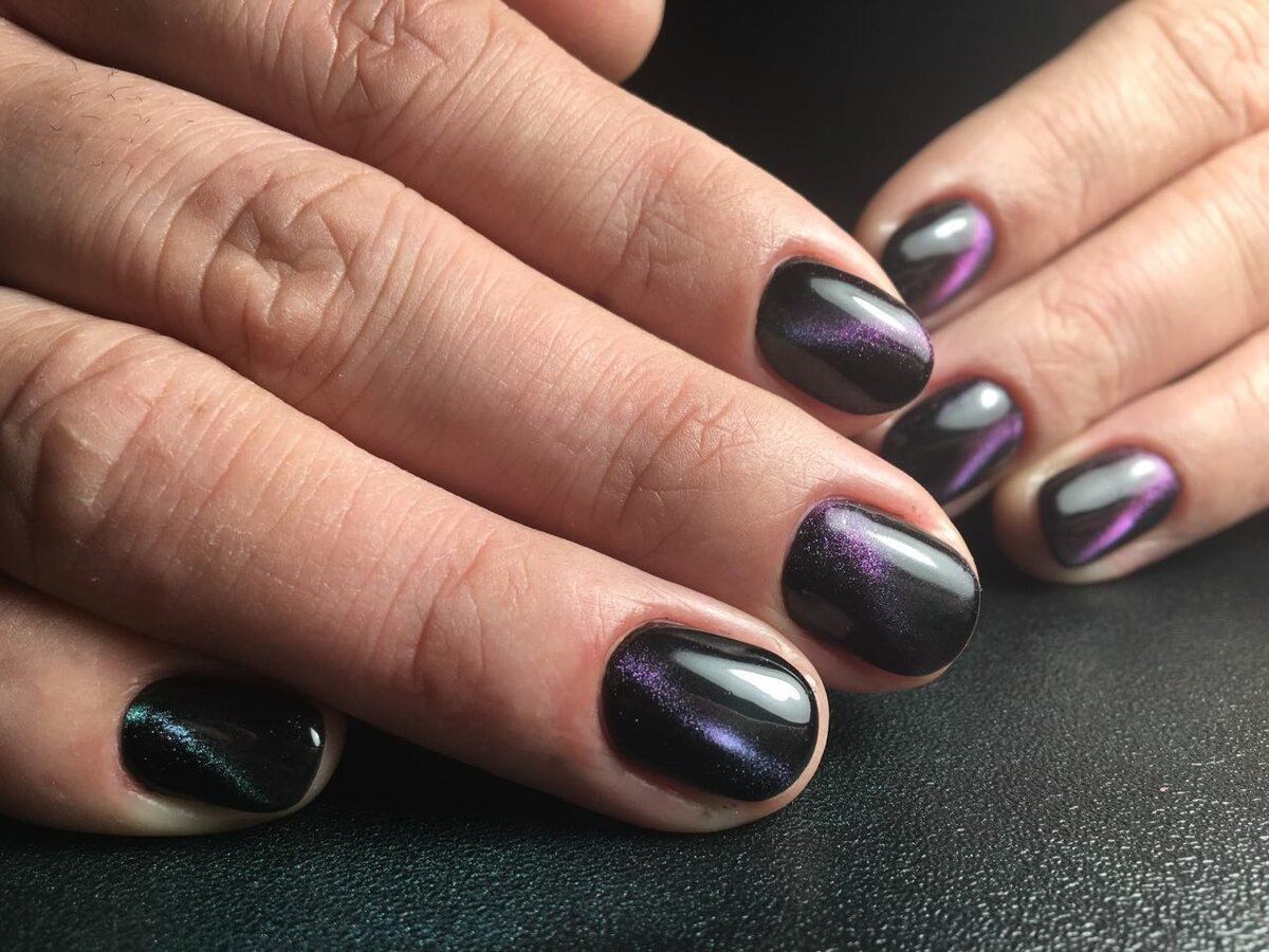 Маникюр 2021 черный кошачий глаз