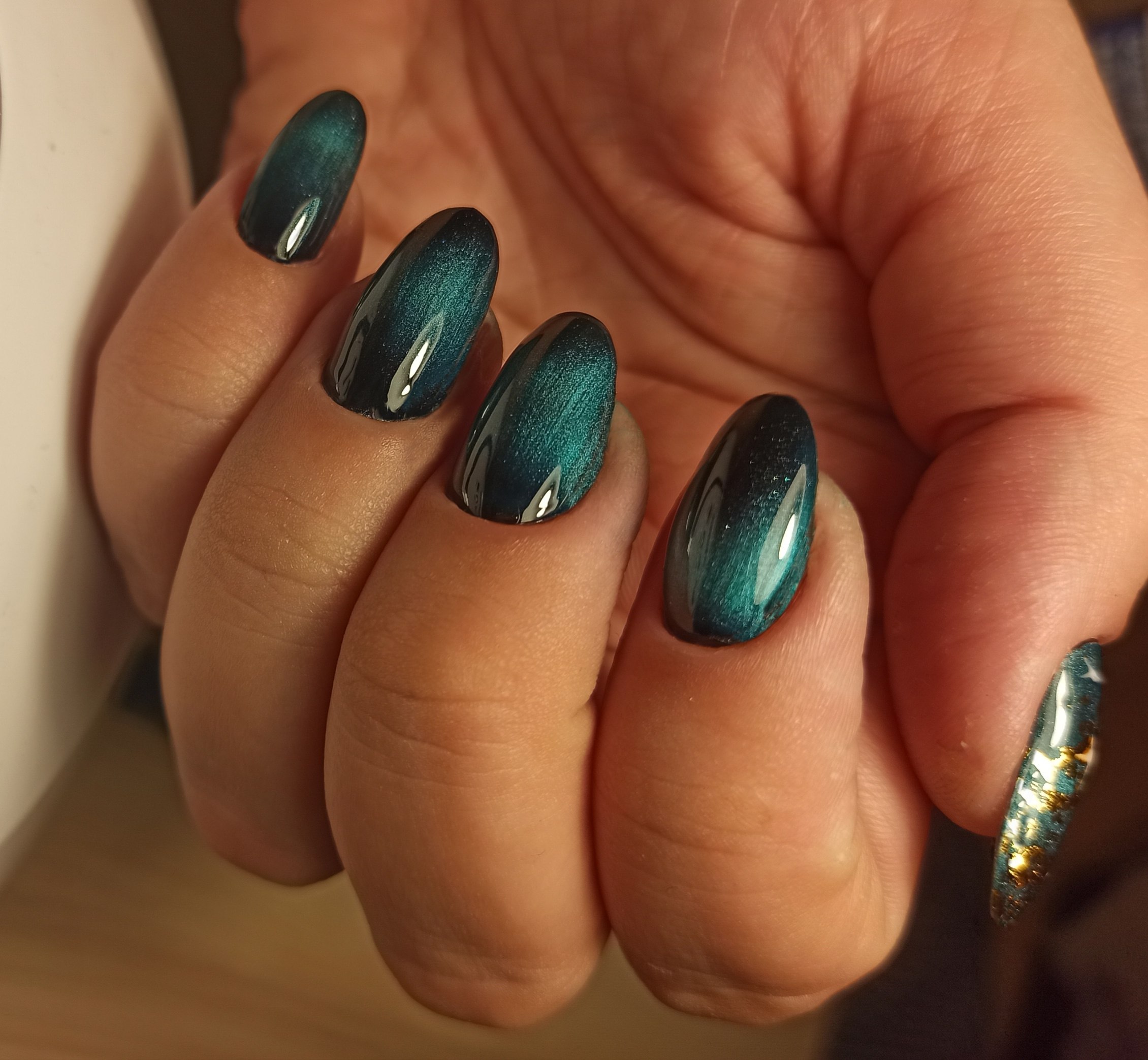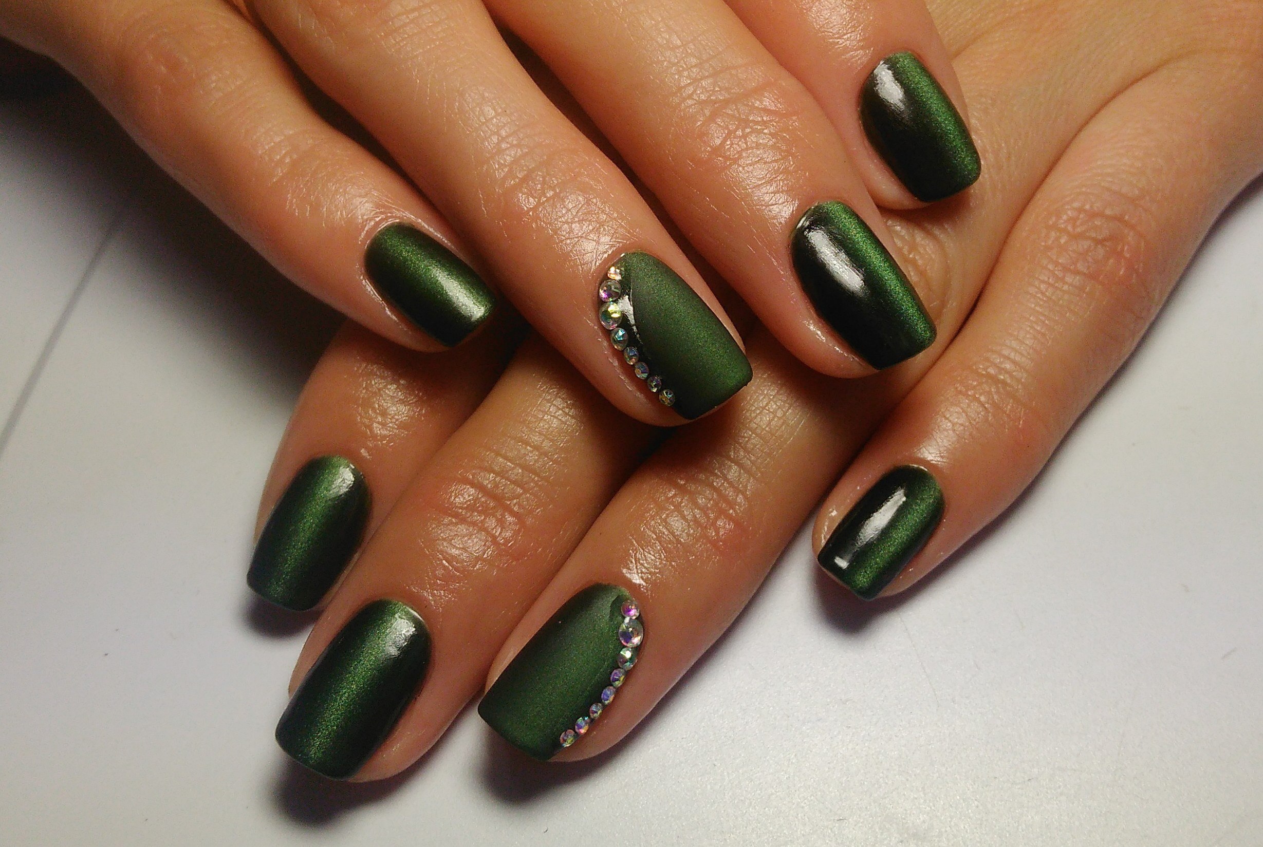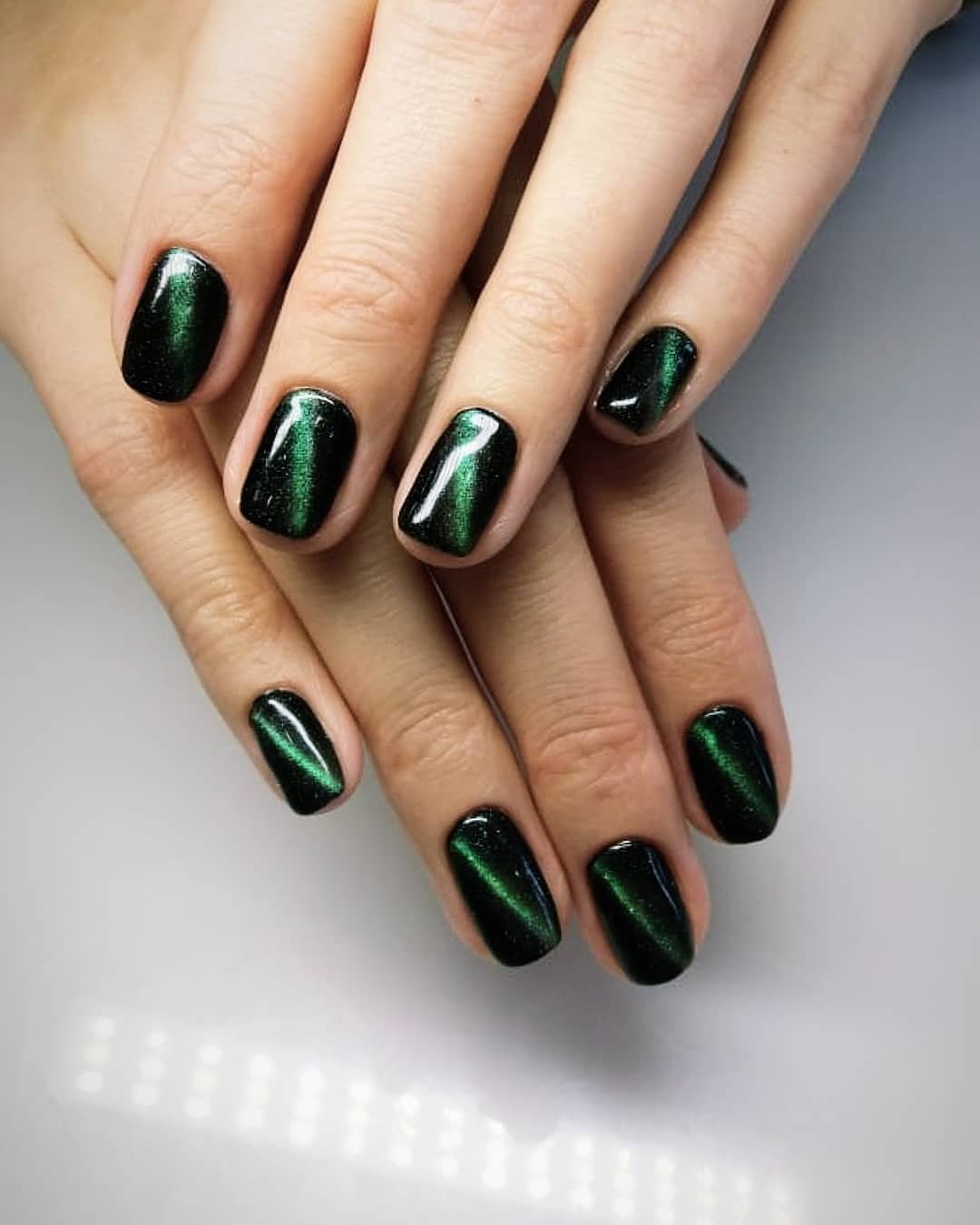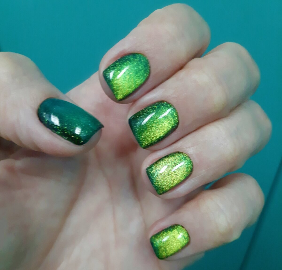 Изумрудный кошачий глаз гель лак