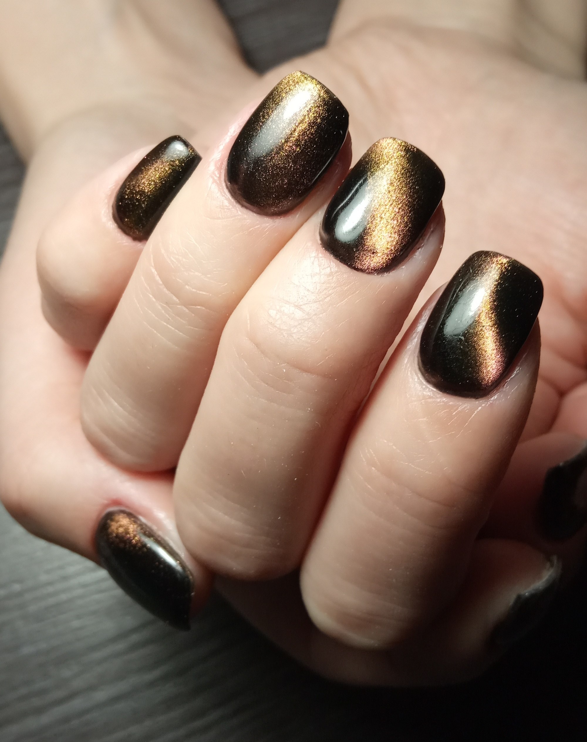 Маникюр кошачий глаз темный