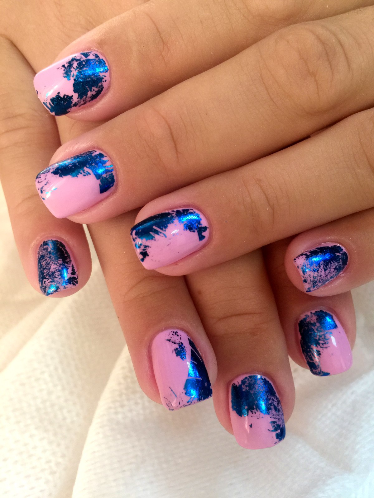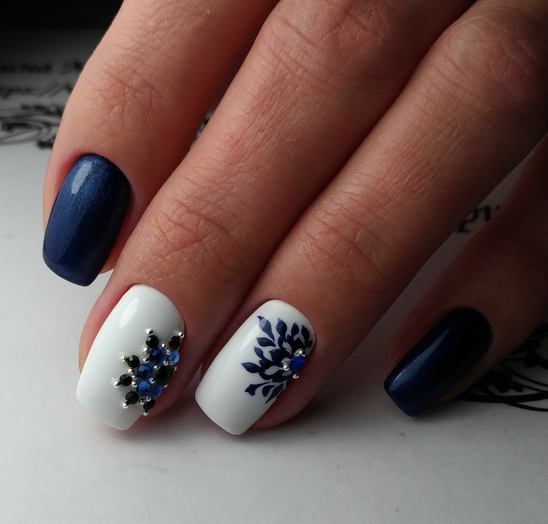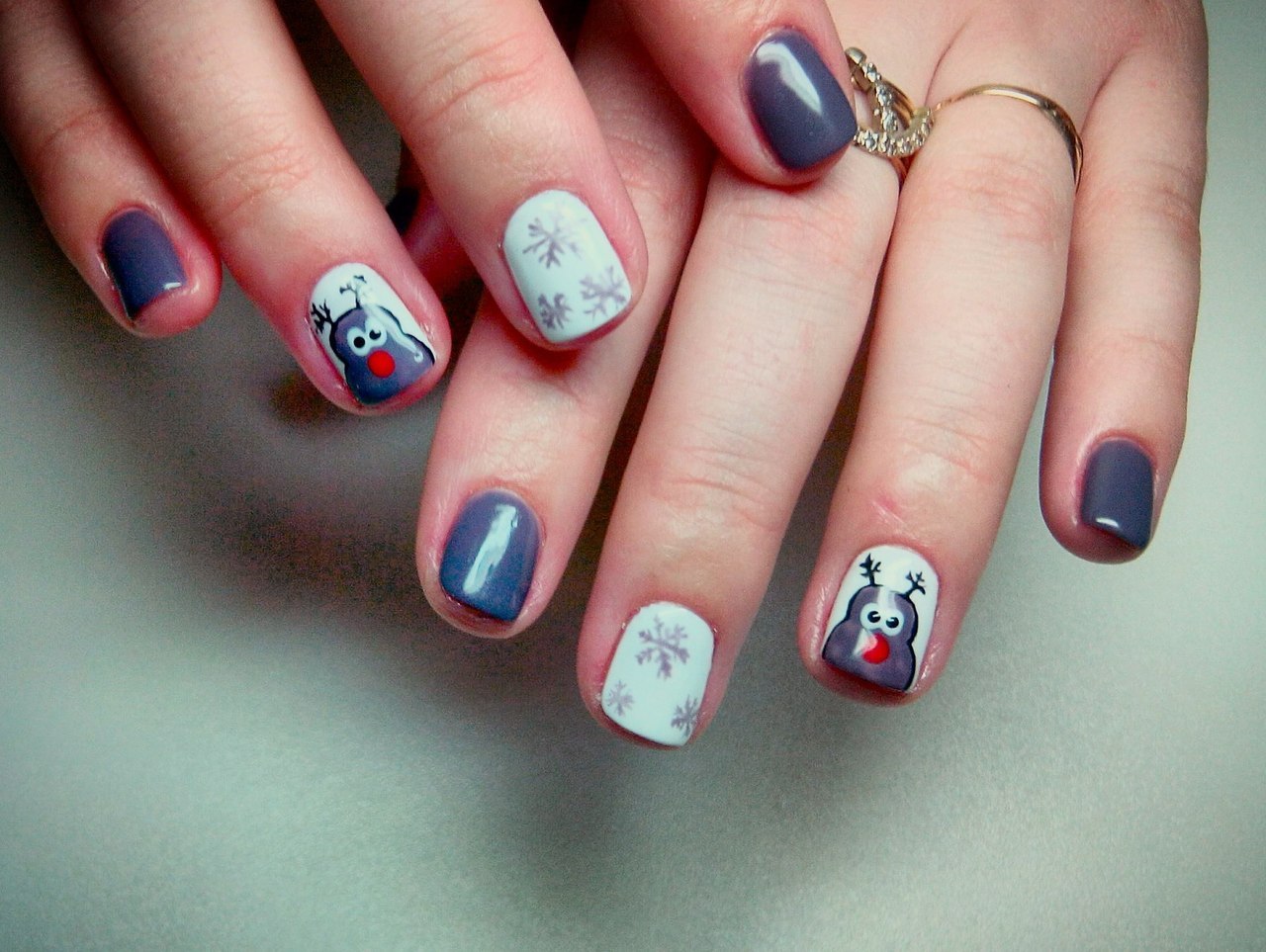 Новогодний маникюр на короткие ногти шеллак с оленями
