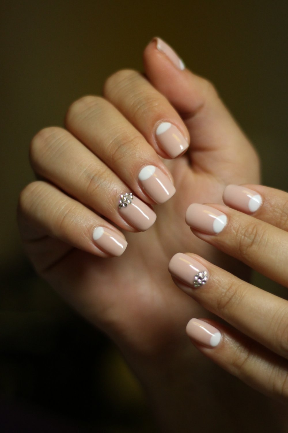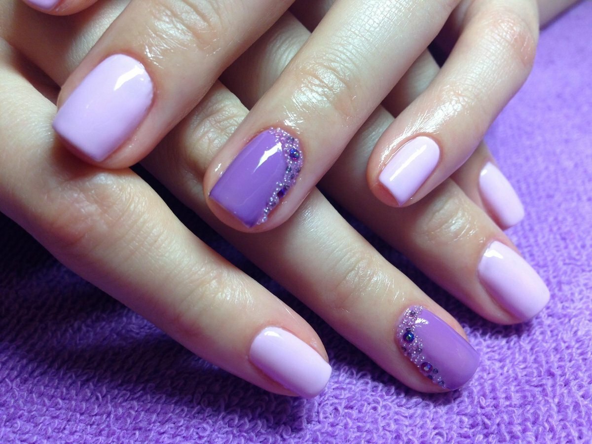 Маникюр на короткие ногти сотстразами