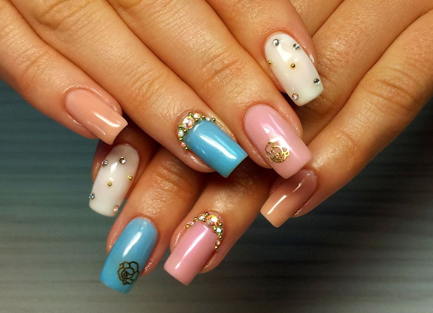 Разноцветные ногти гель
