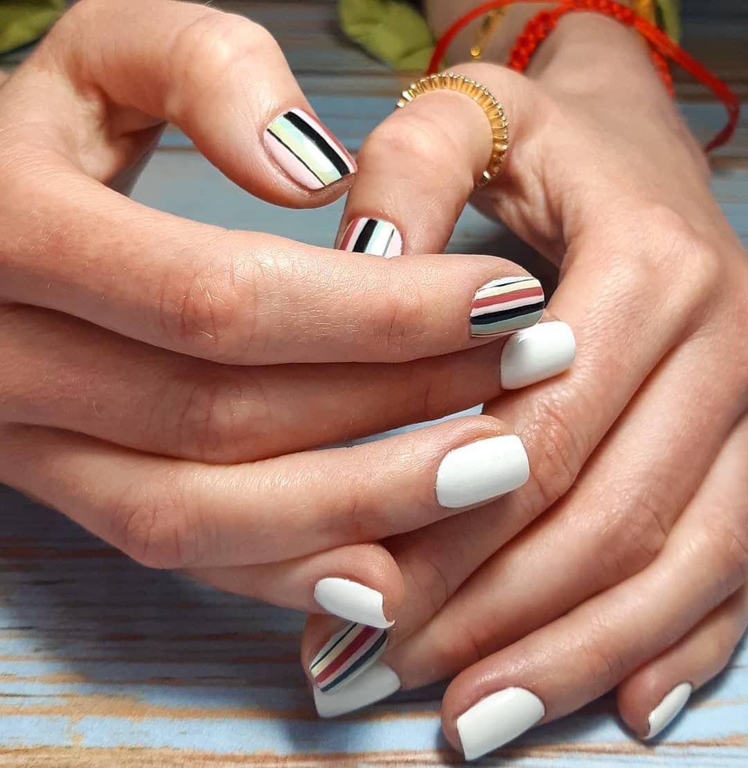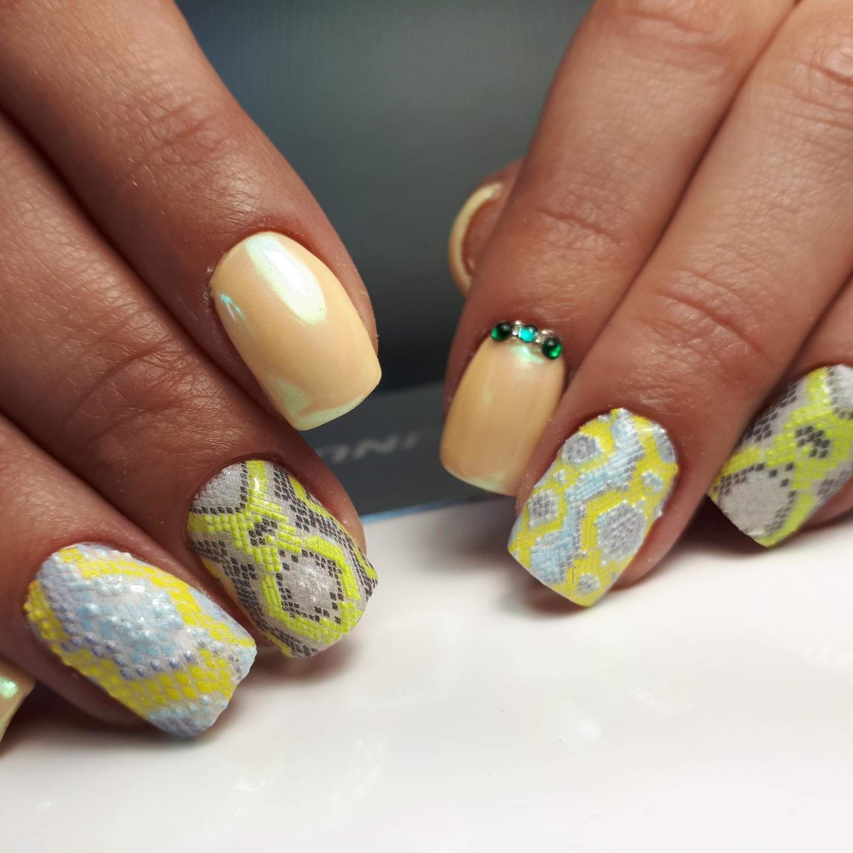 Летний маникюр 2021 на длинные ногти миндаль разноцветная пастель