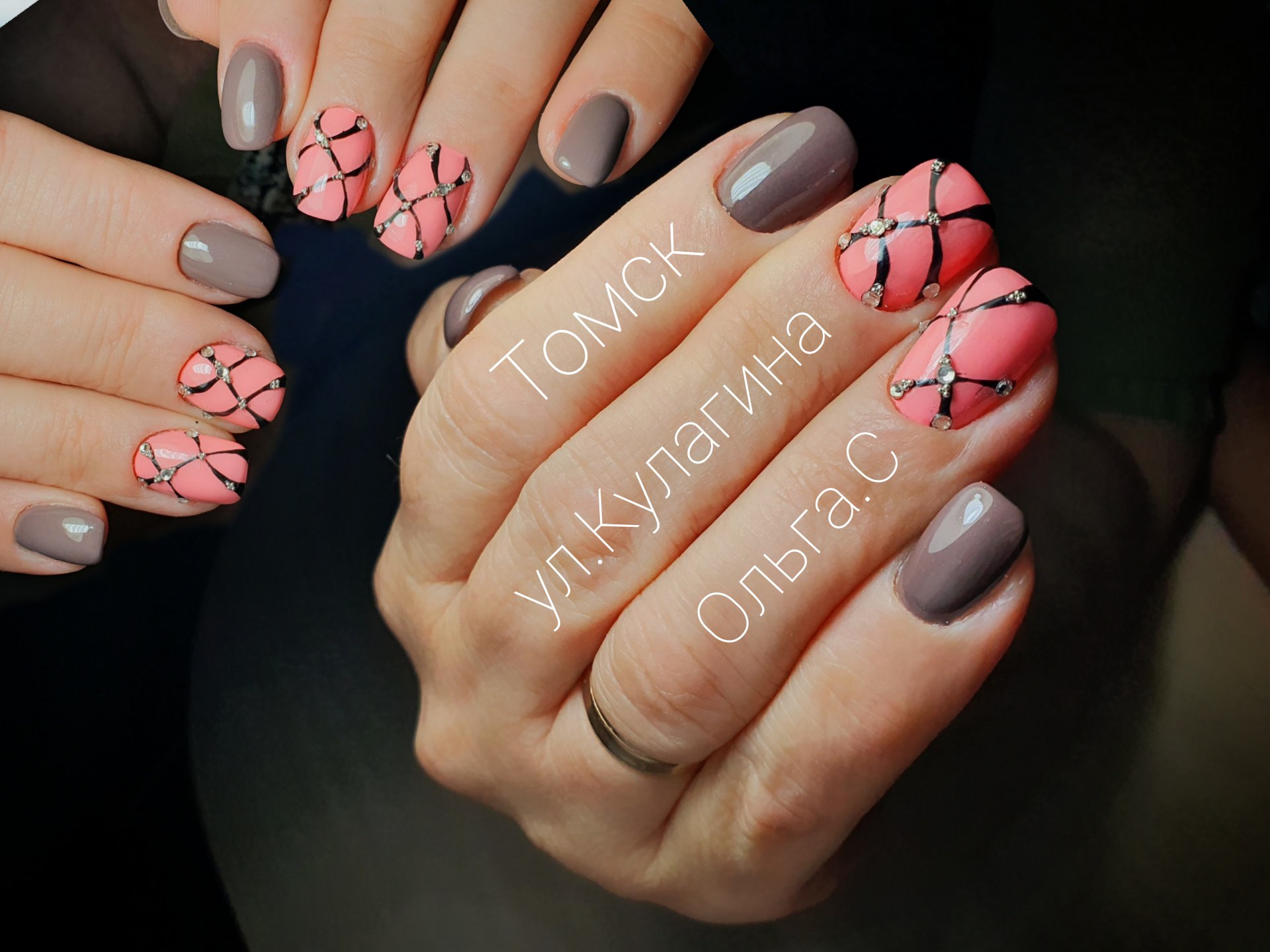 Розовый маникюр с абстракцией