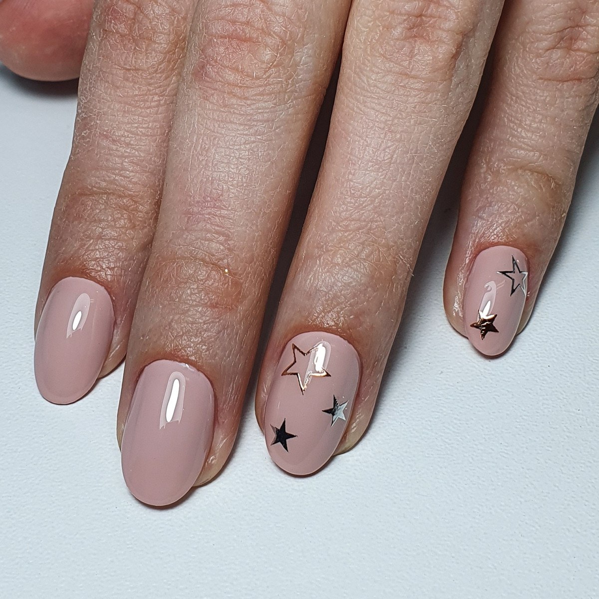 Нюдовый маникюр со звездочками