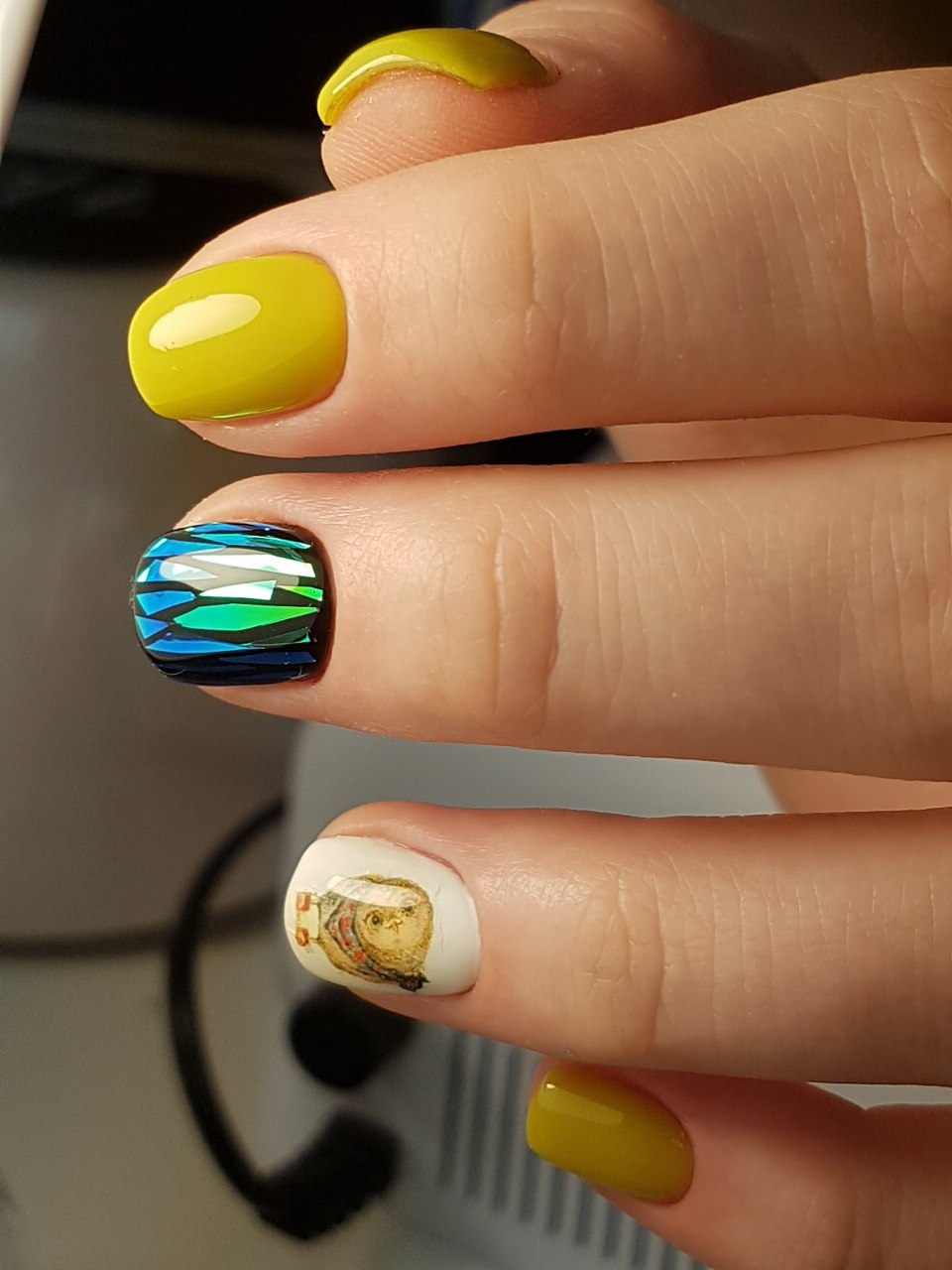 Желто-зеленый маникюр на короткие ногти