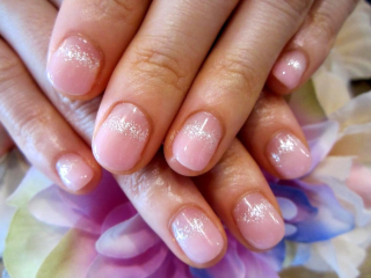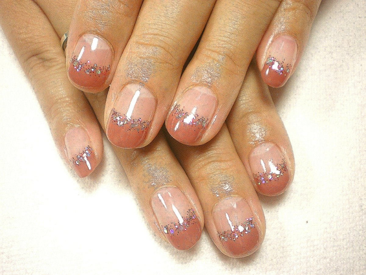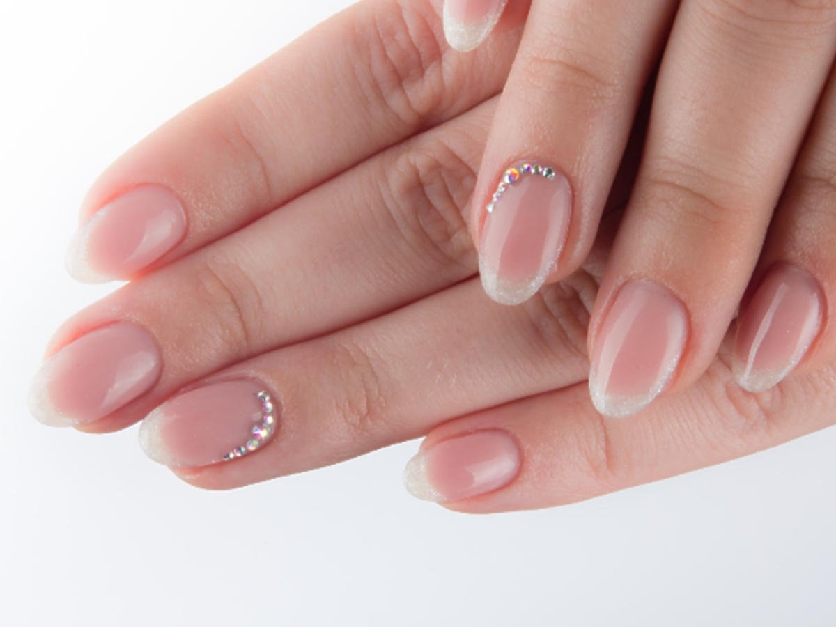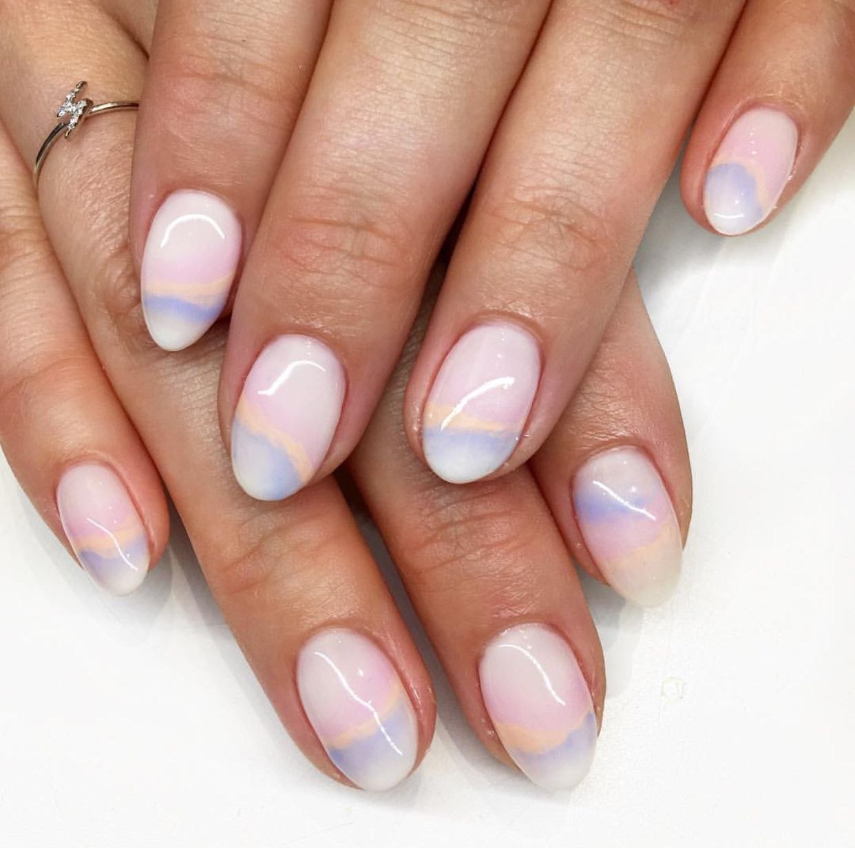 Полупрозрачный маникюр на коротких ногтях овальной формы