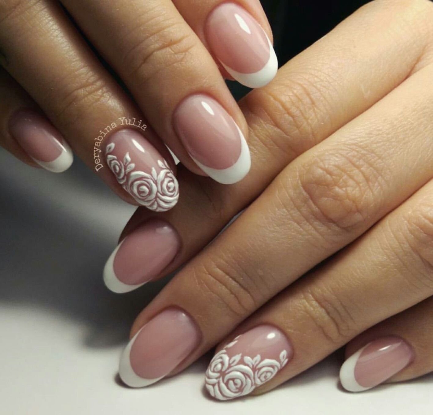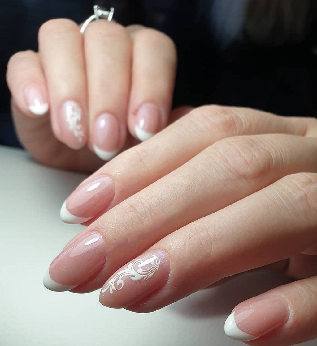 Французский маникюр на короткие круглые ногти дизайн (40 фото)