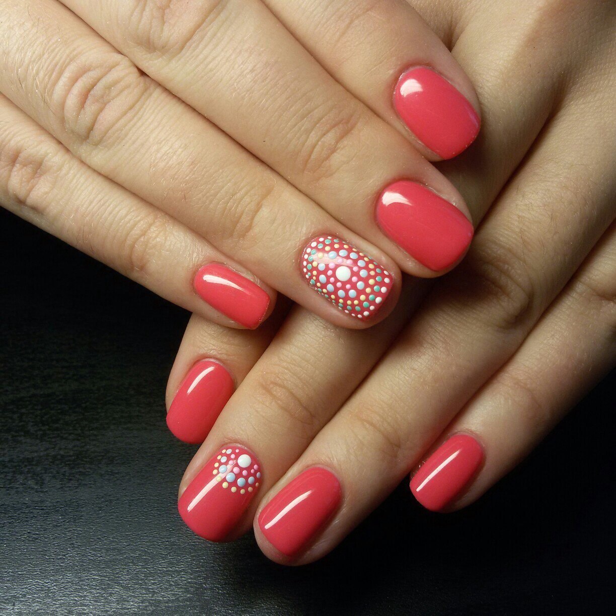 Красивый коралловый маникюр