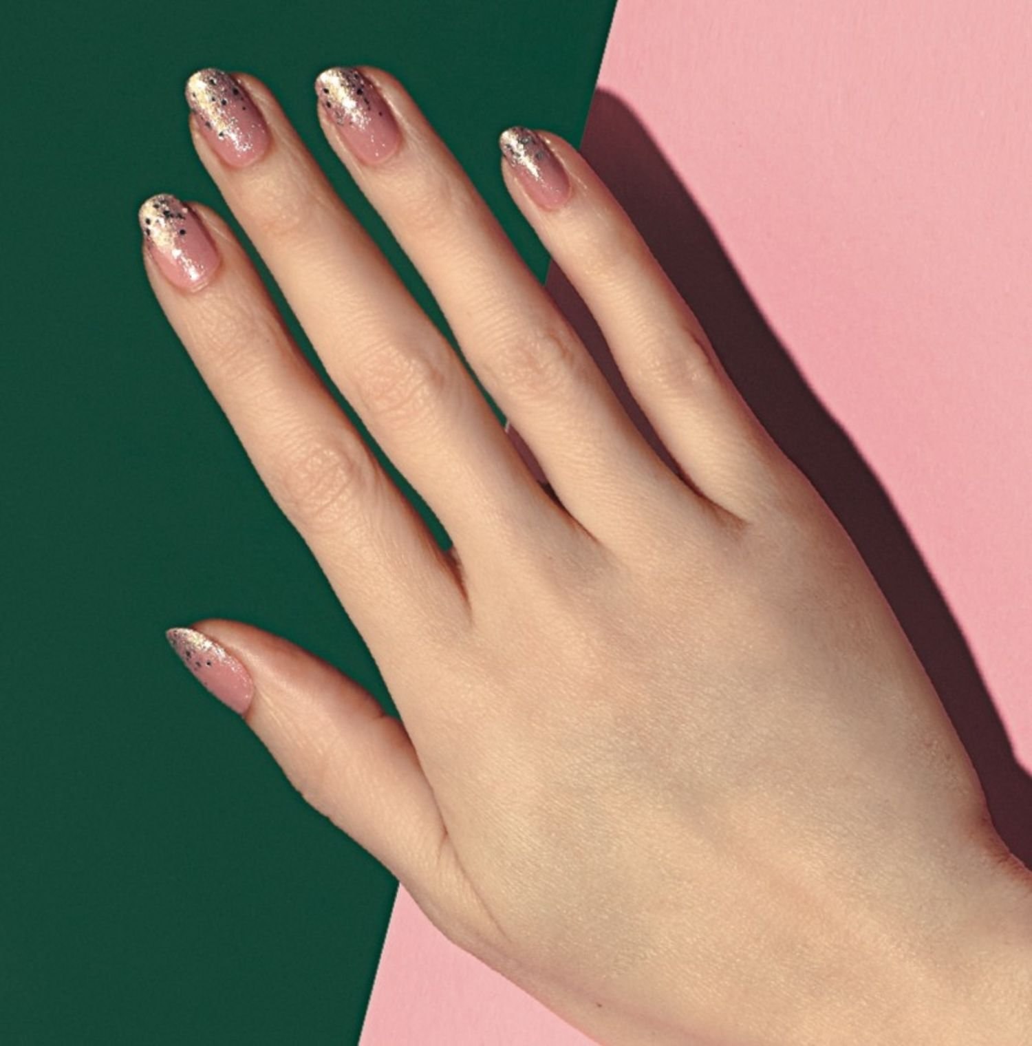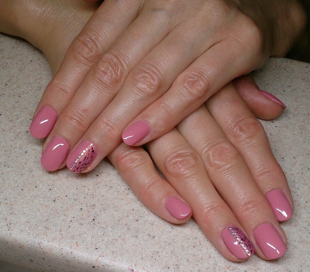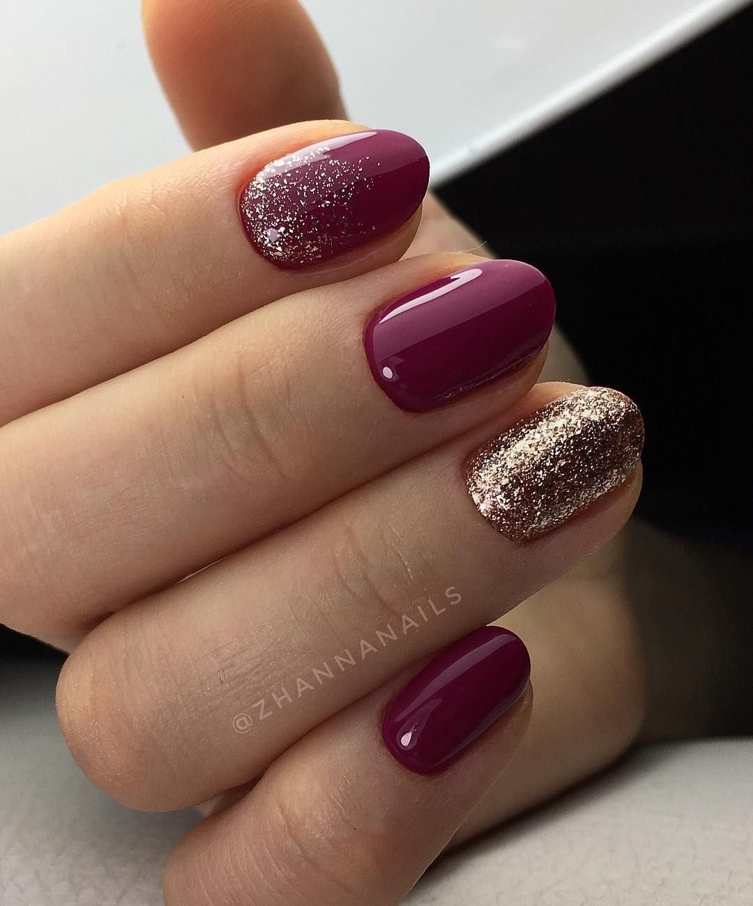 Маникюр однотонный с блестками