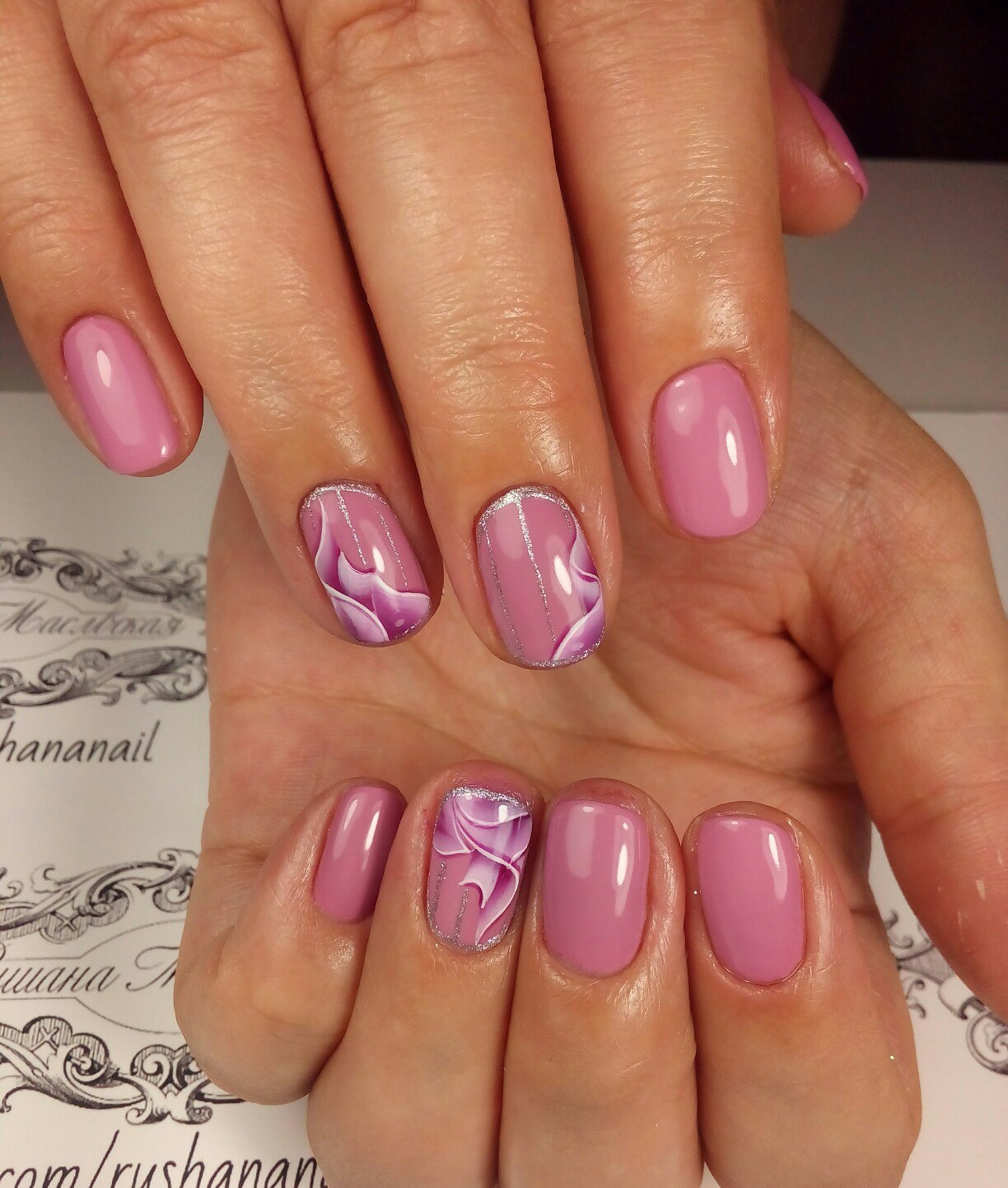 Маникюр фиолетовый с розовым