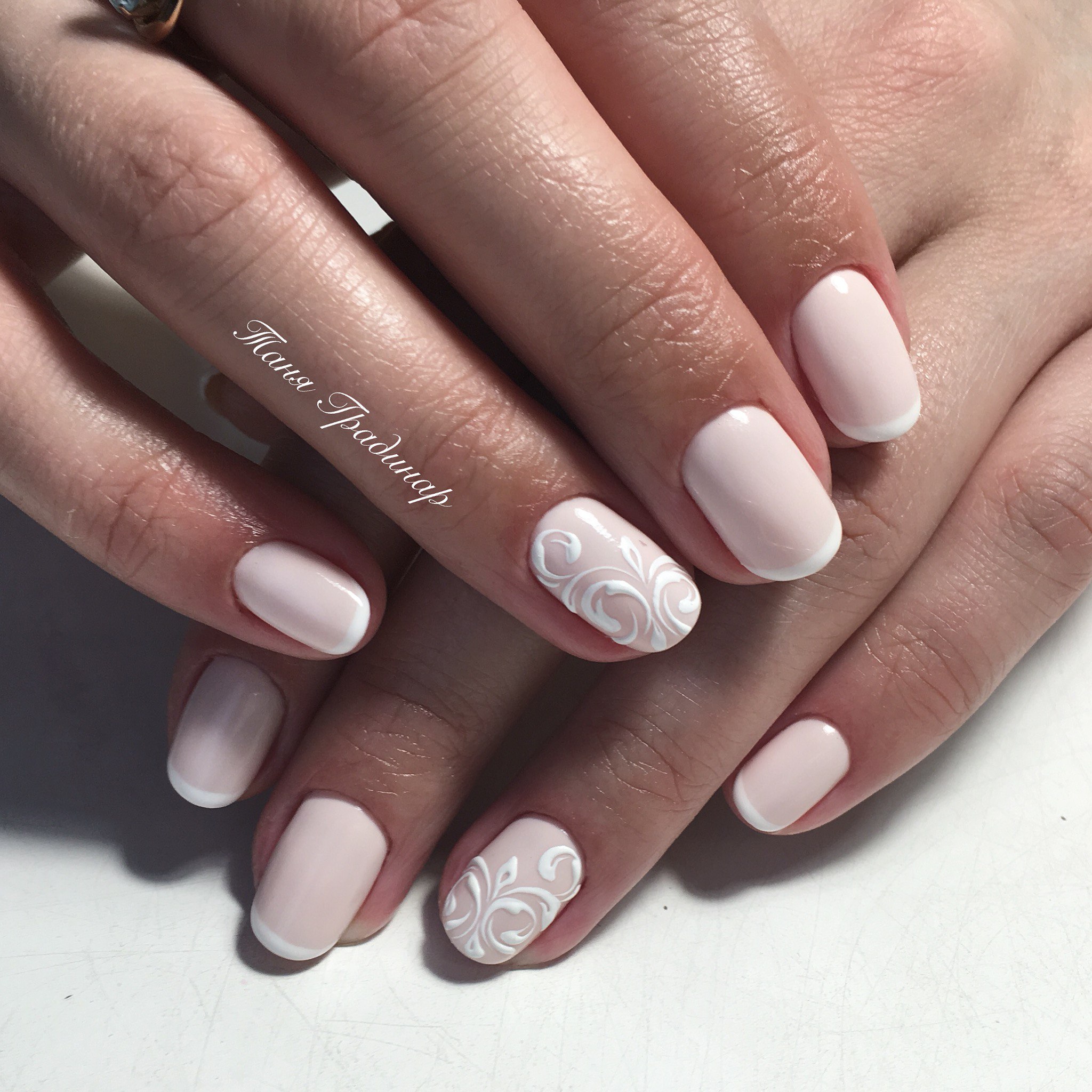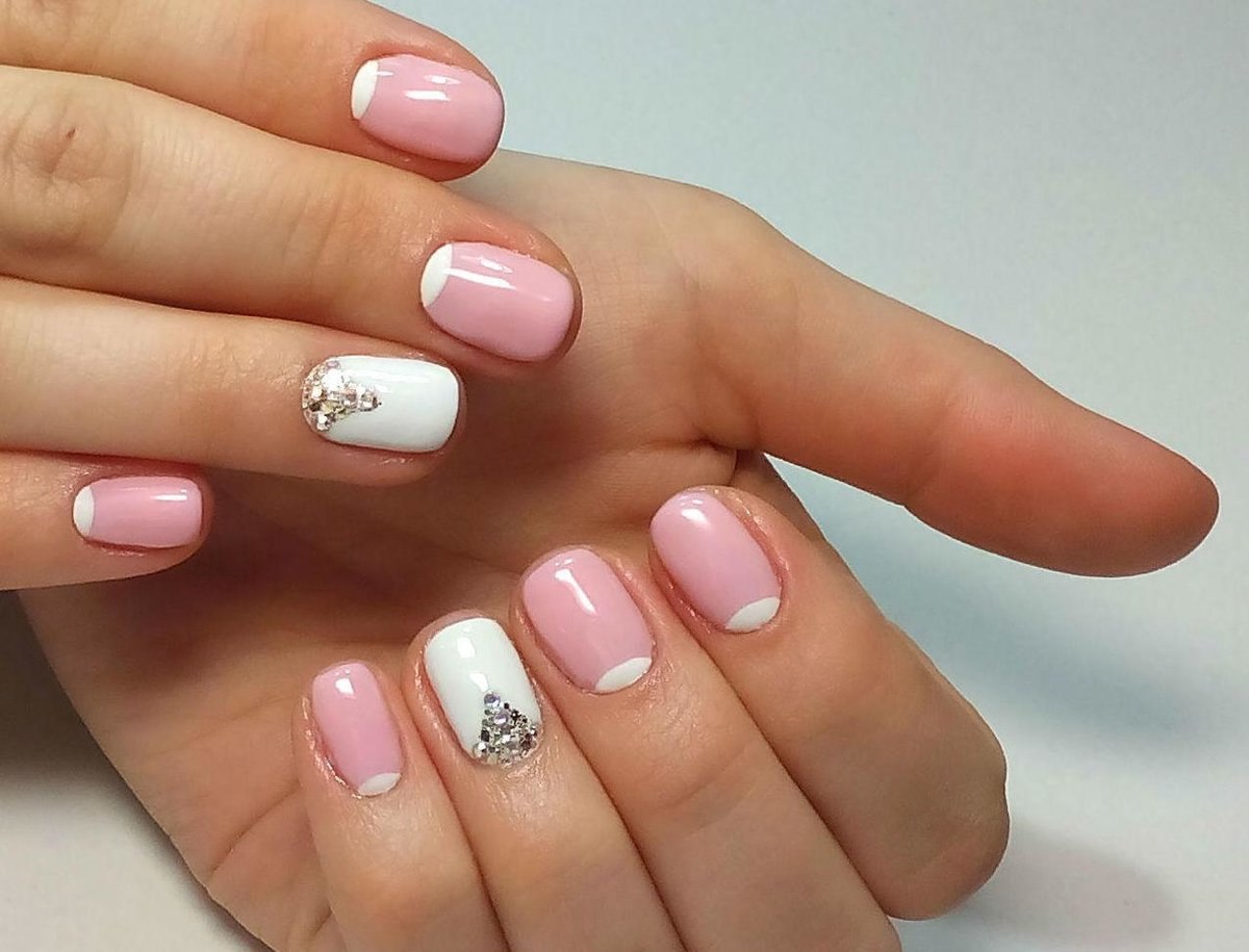Светлый маникюр на коротких