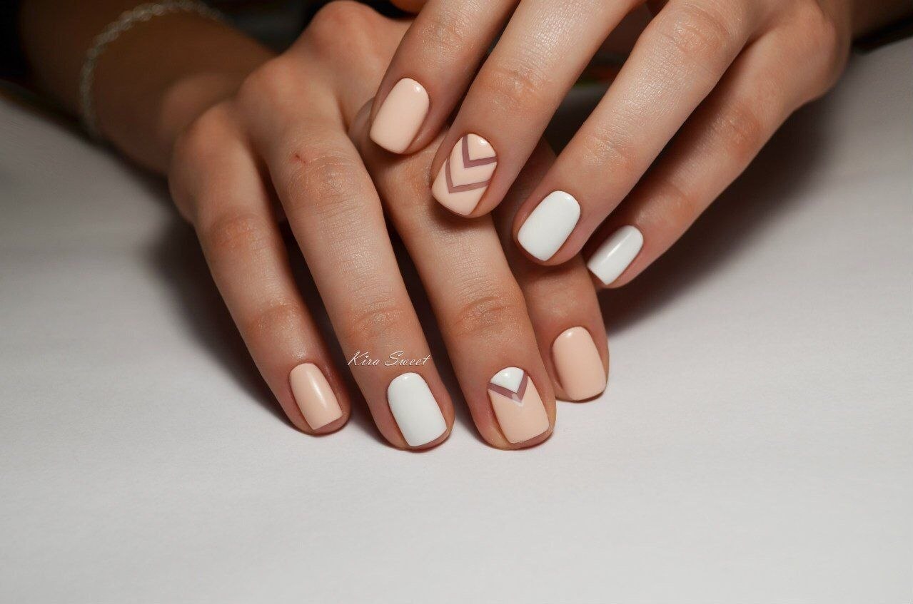 Бежево белый маникюр на короткие