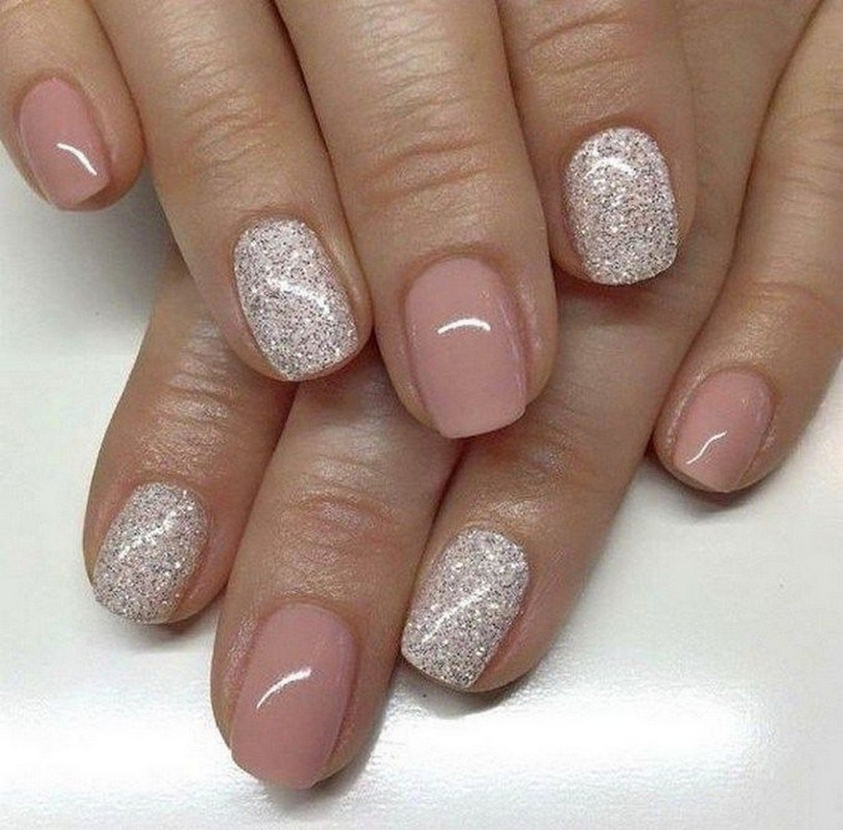 Блестящий маникюр на короткие ногти