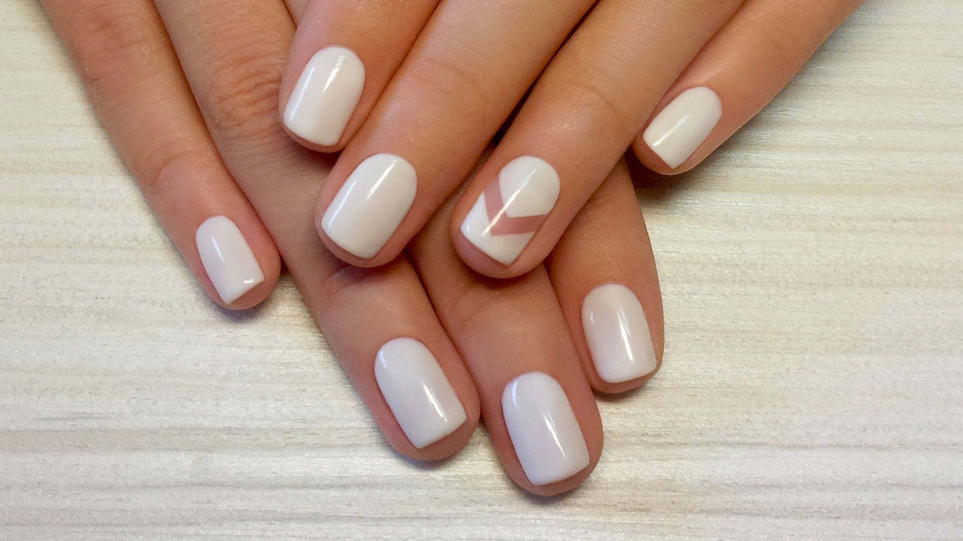 Белый шеллак на короткие ногти