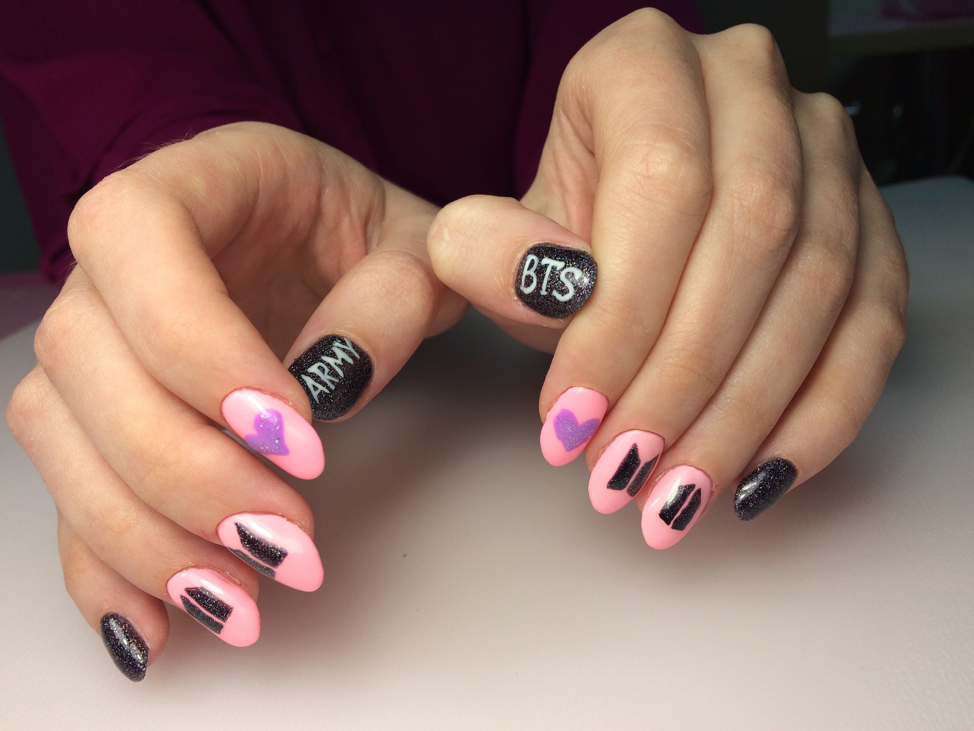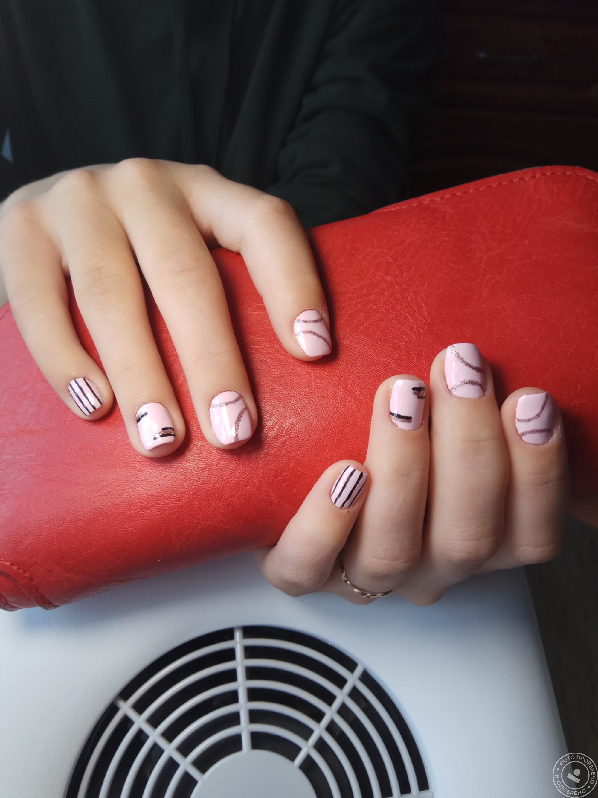 Маникюр розовый с черным