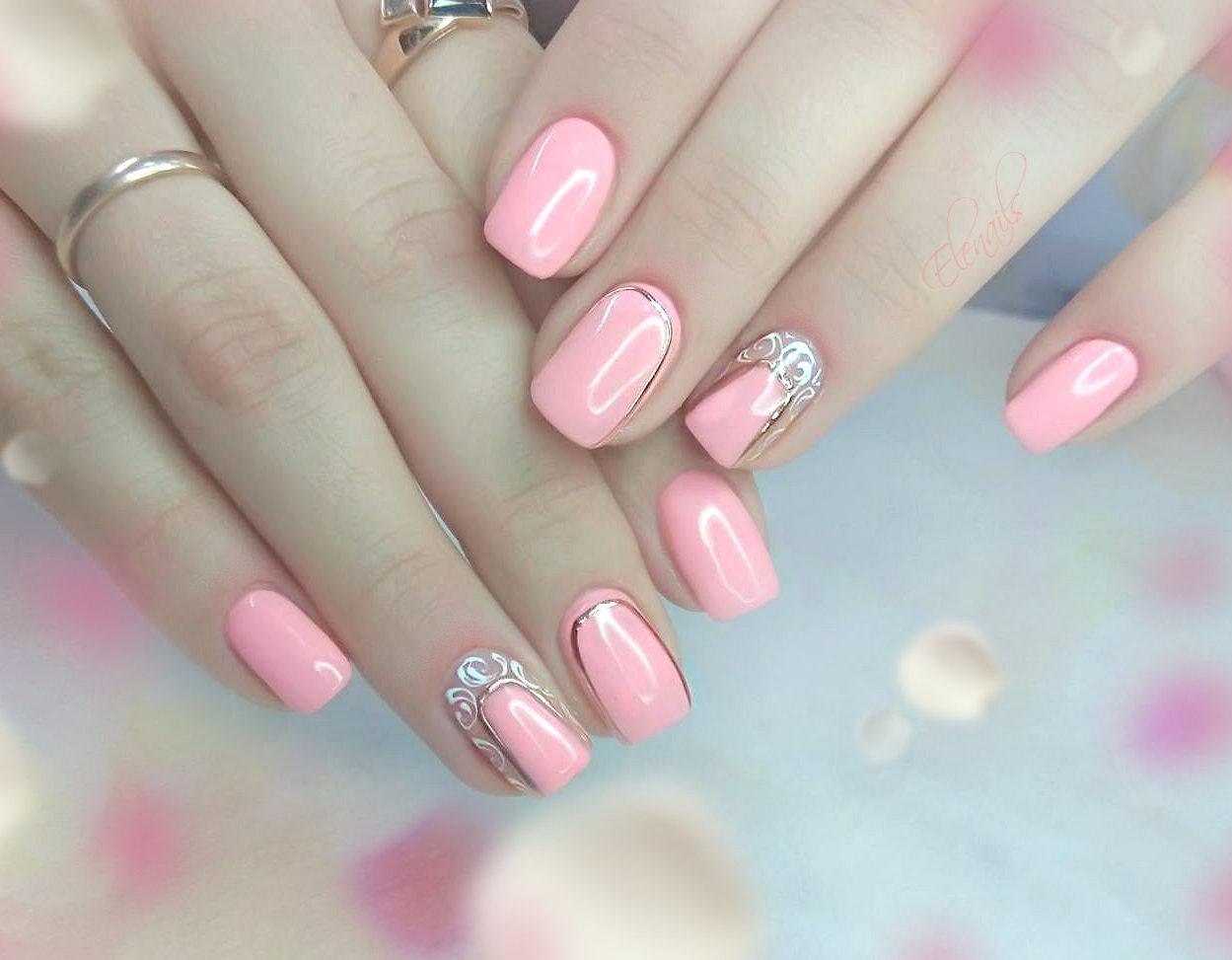 Маникюр на короткие овальные ногти гель лаком к восьмому марта
