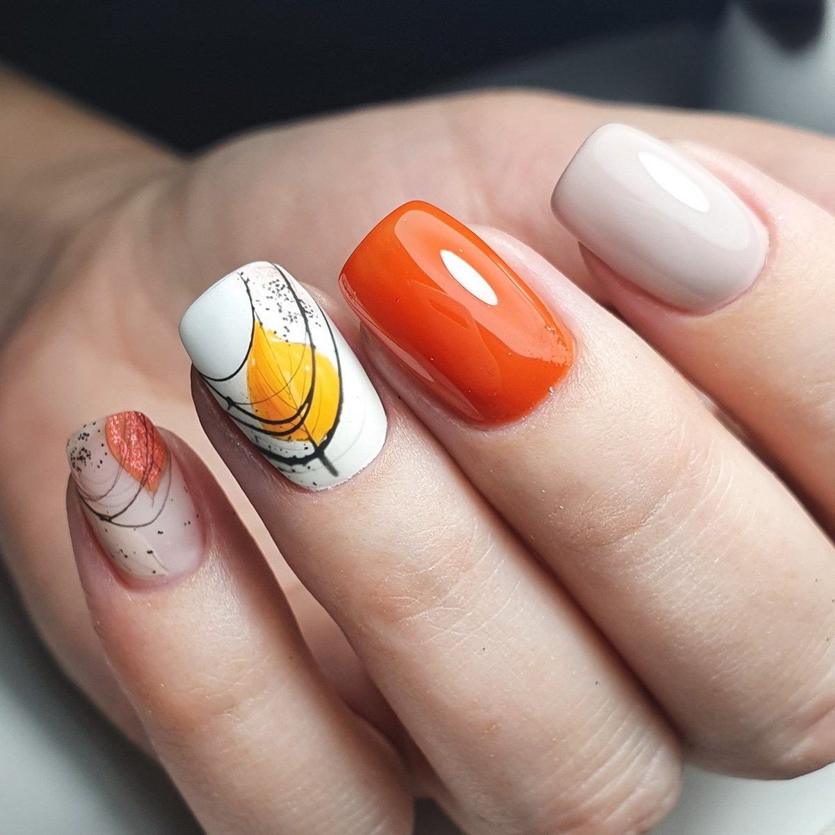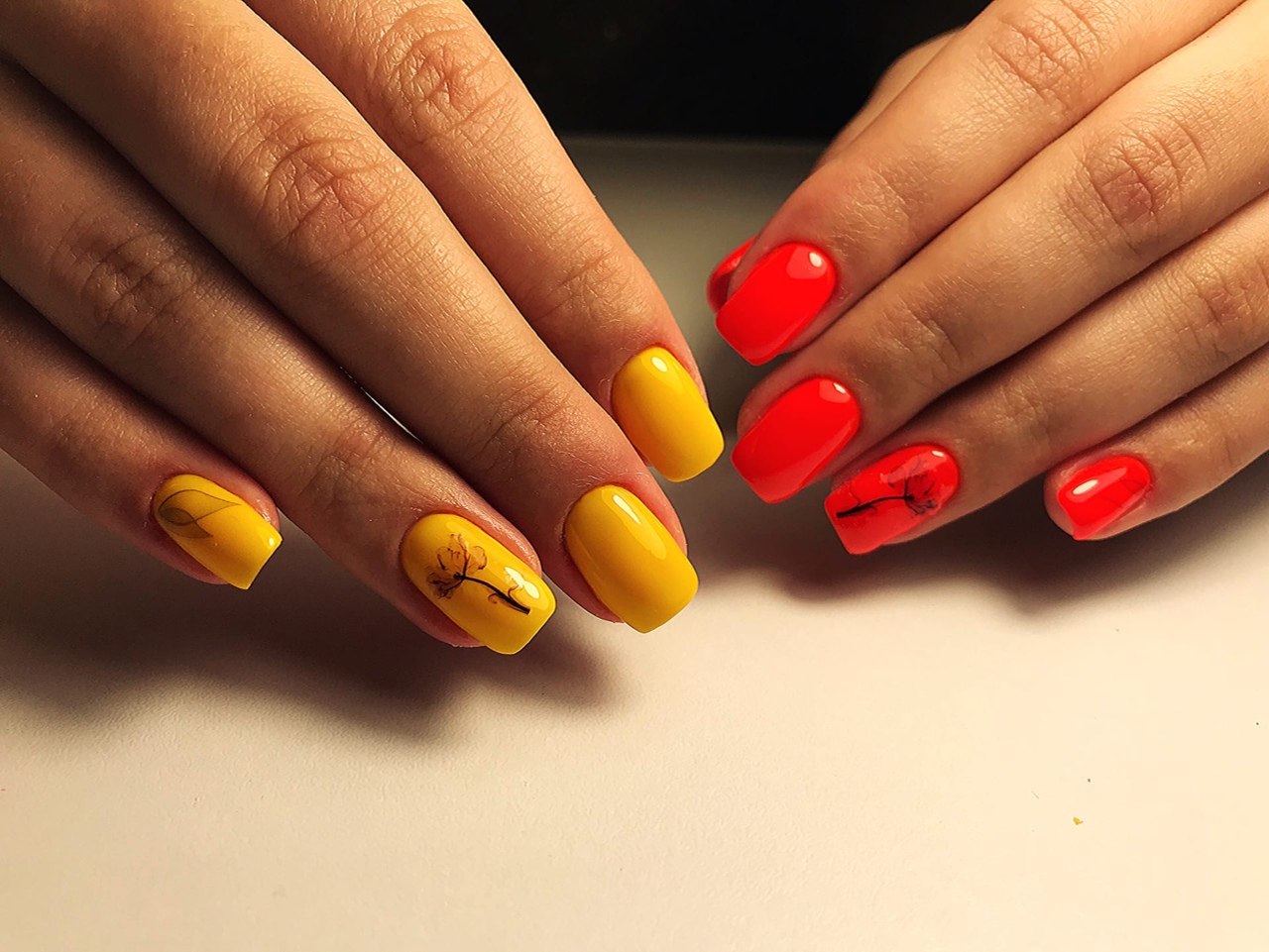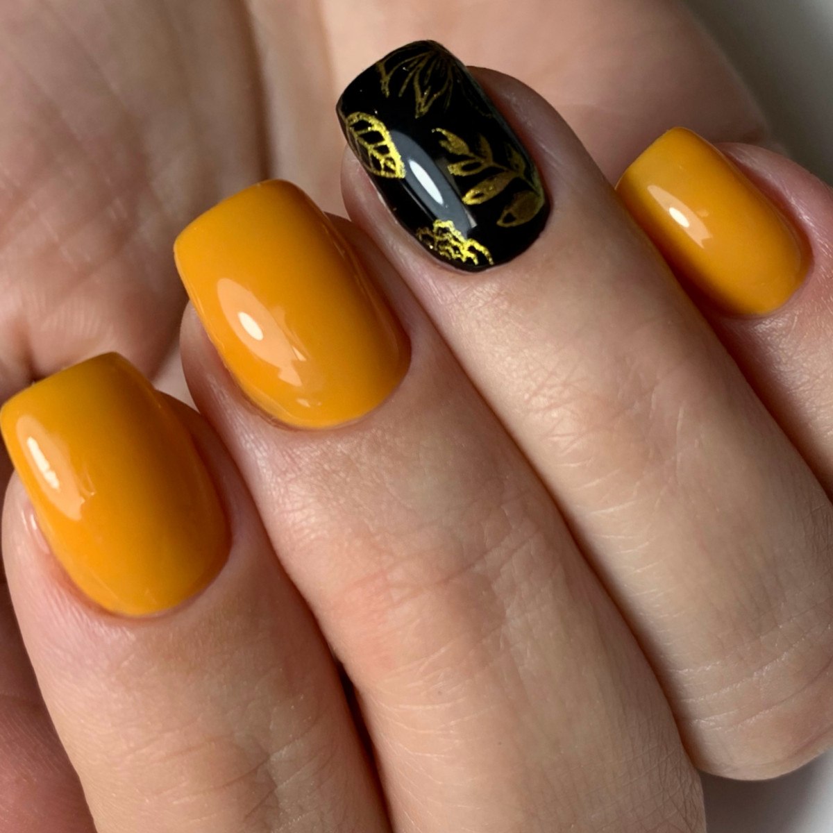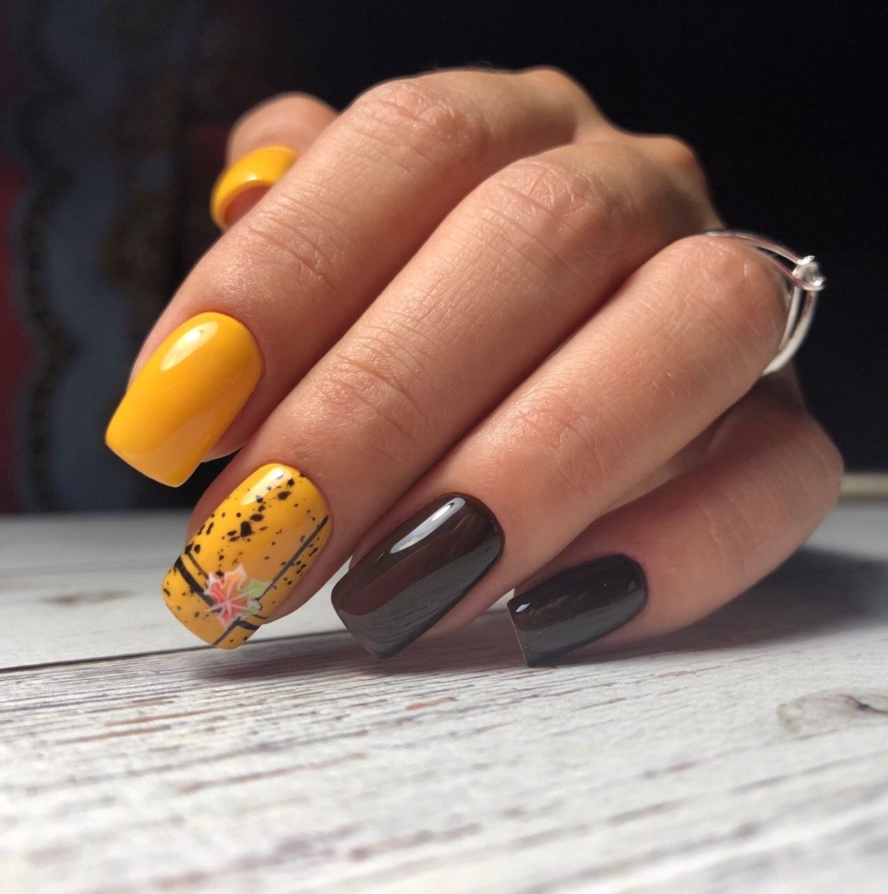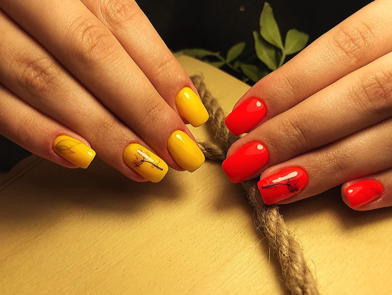 Маникюр на короткие квадратные ногти яркие осенние (41 фото)