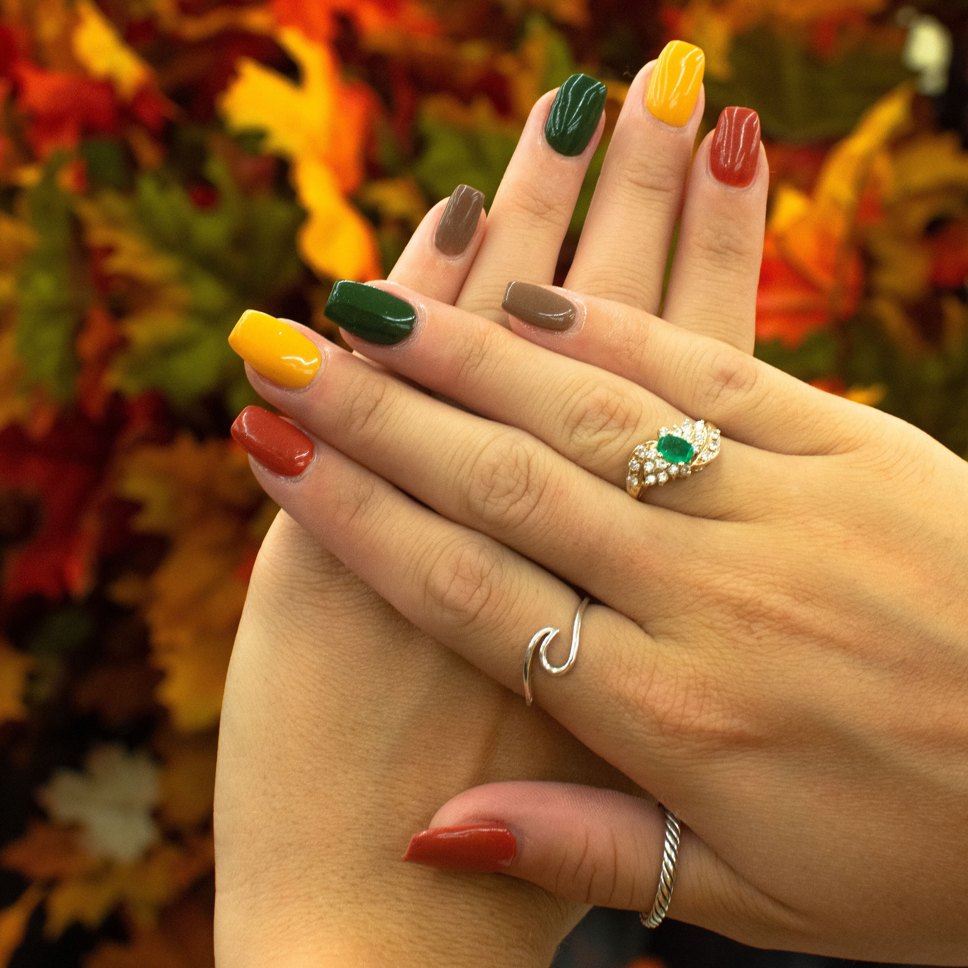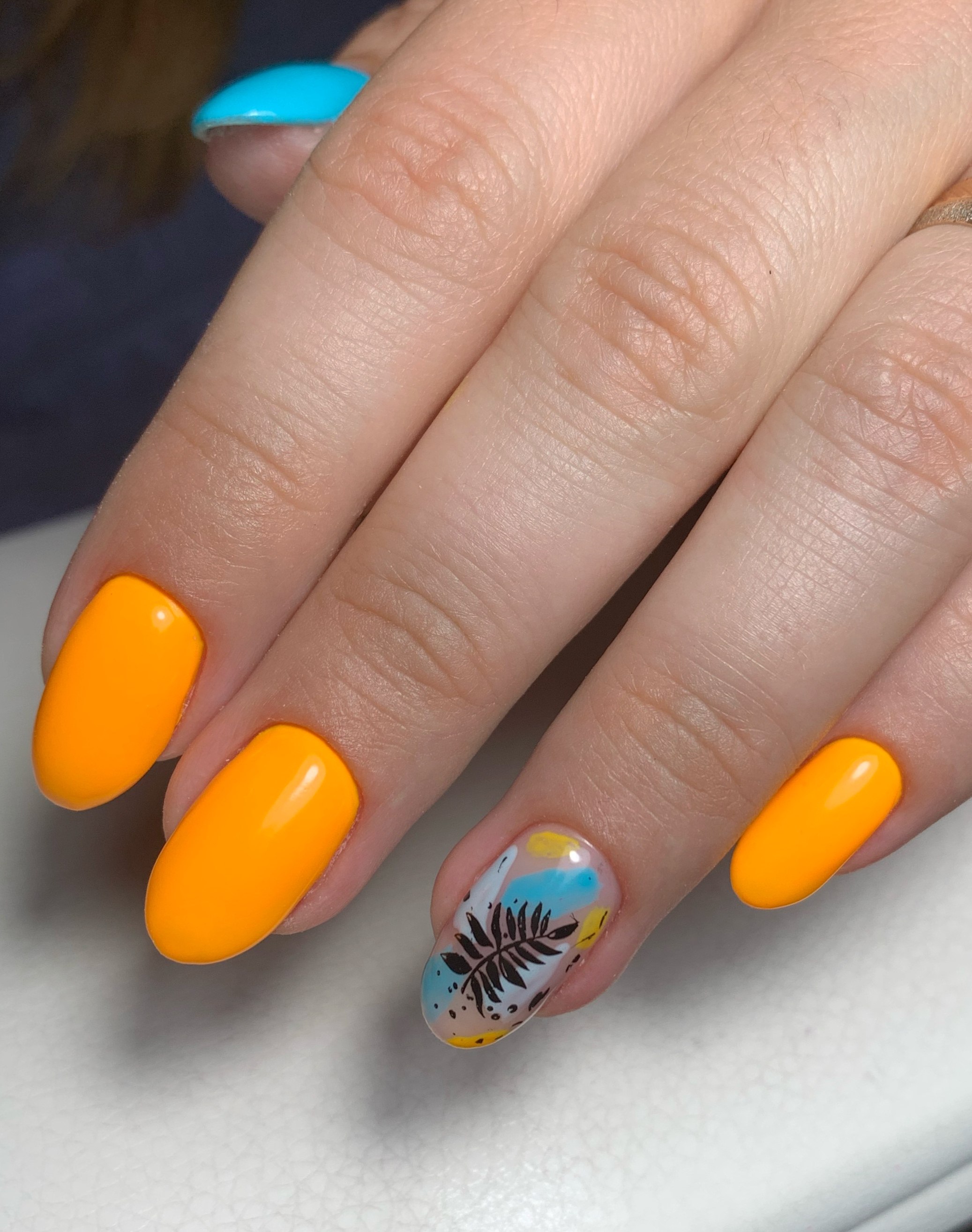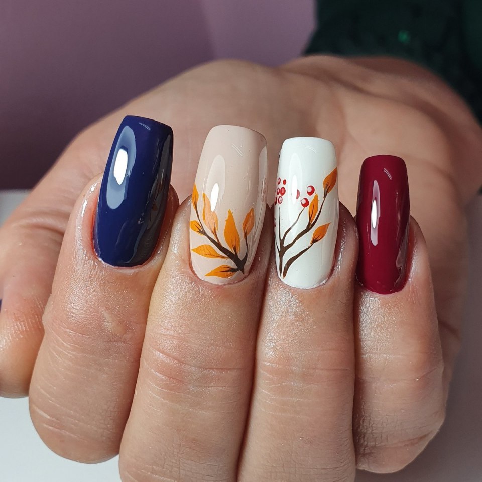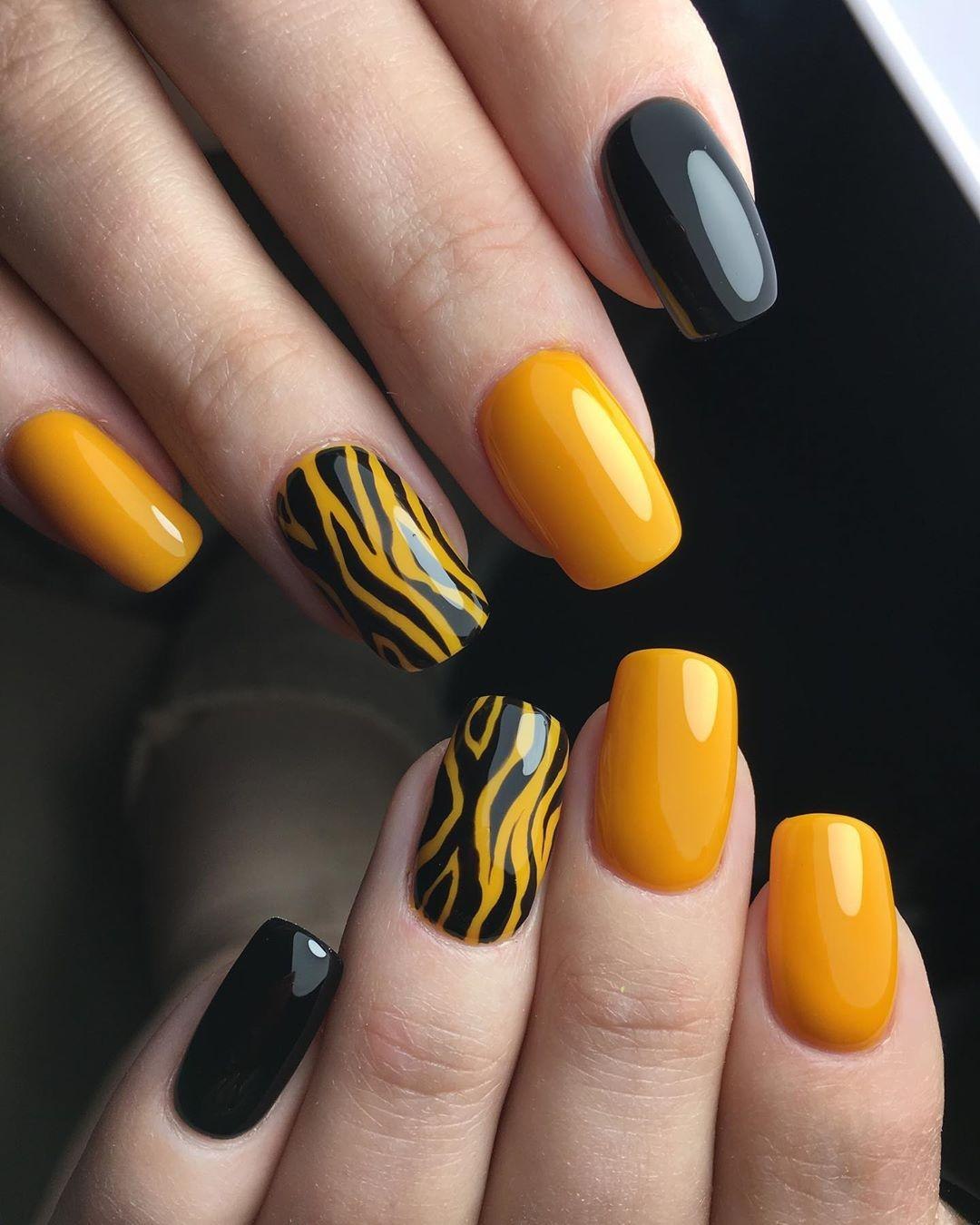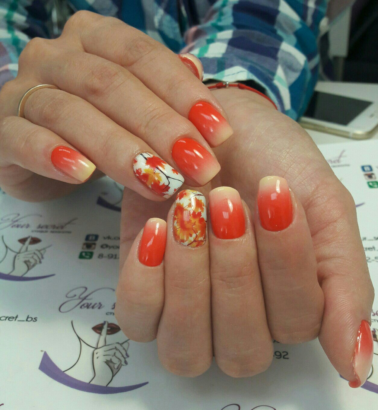 Маникюр на короткие квадратные ногти яркие осенние (41 фото)