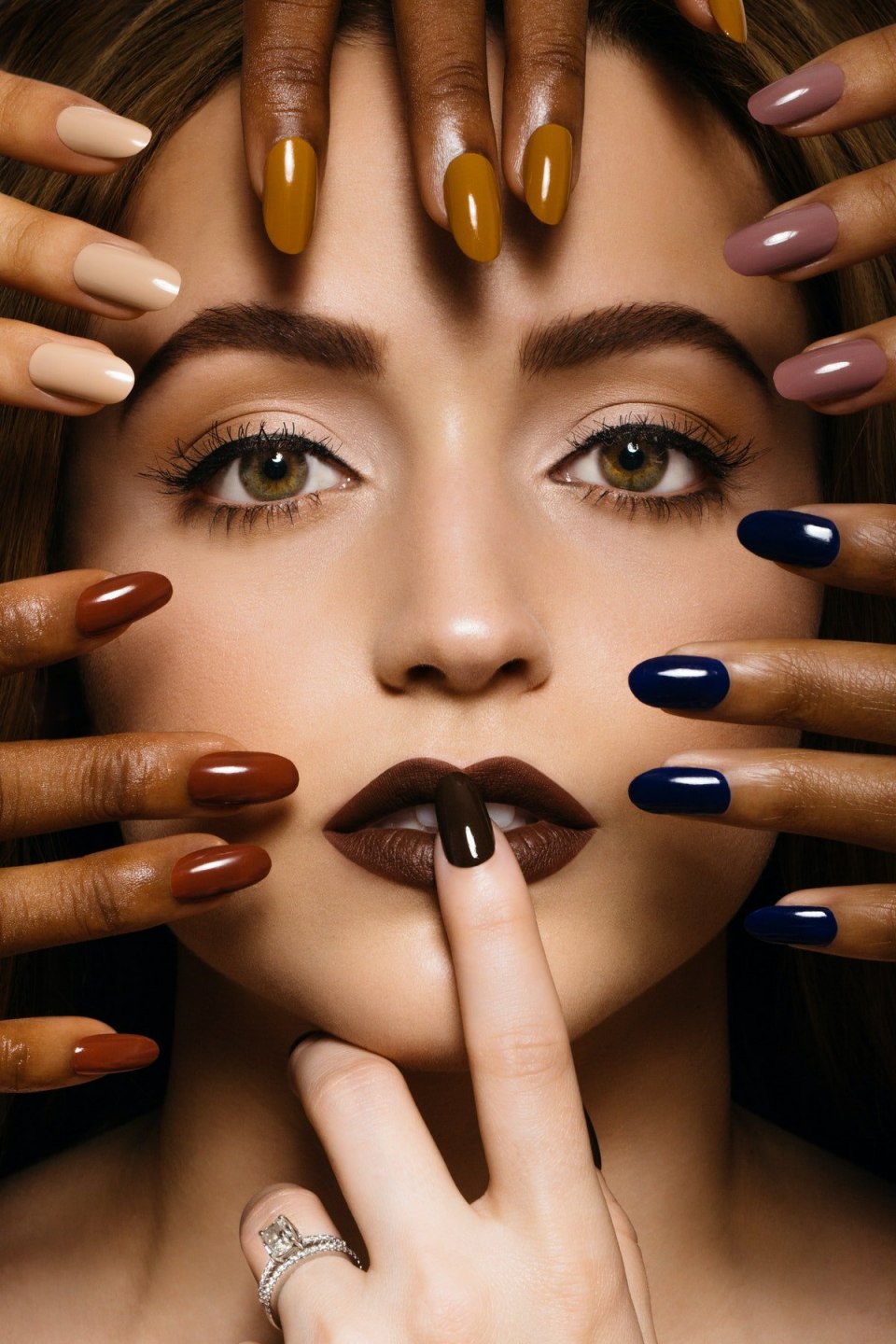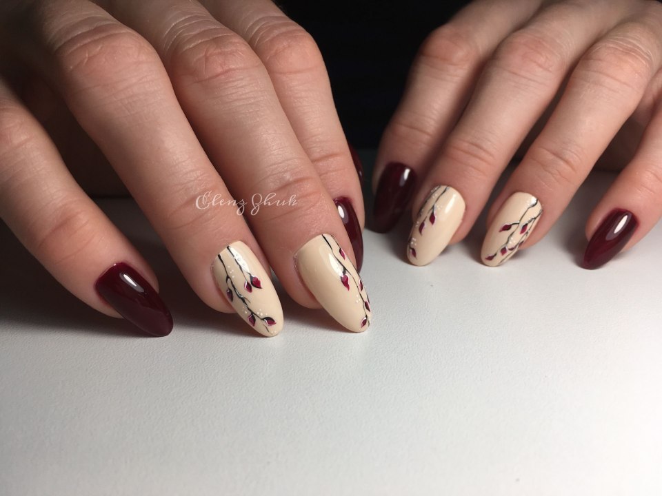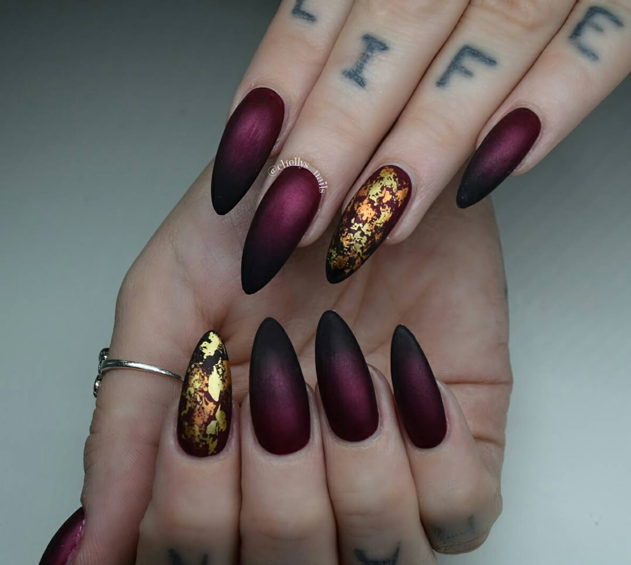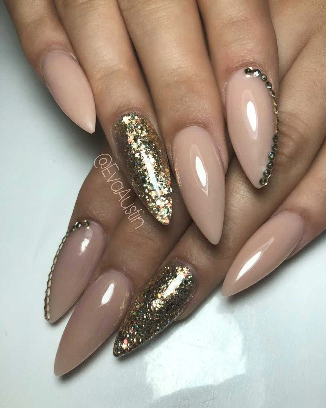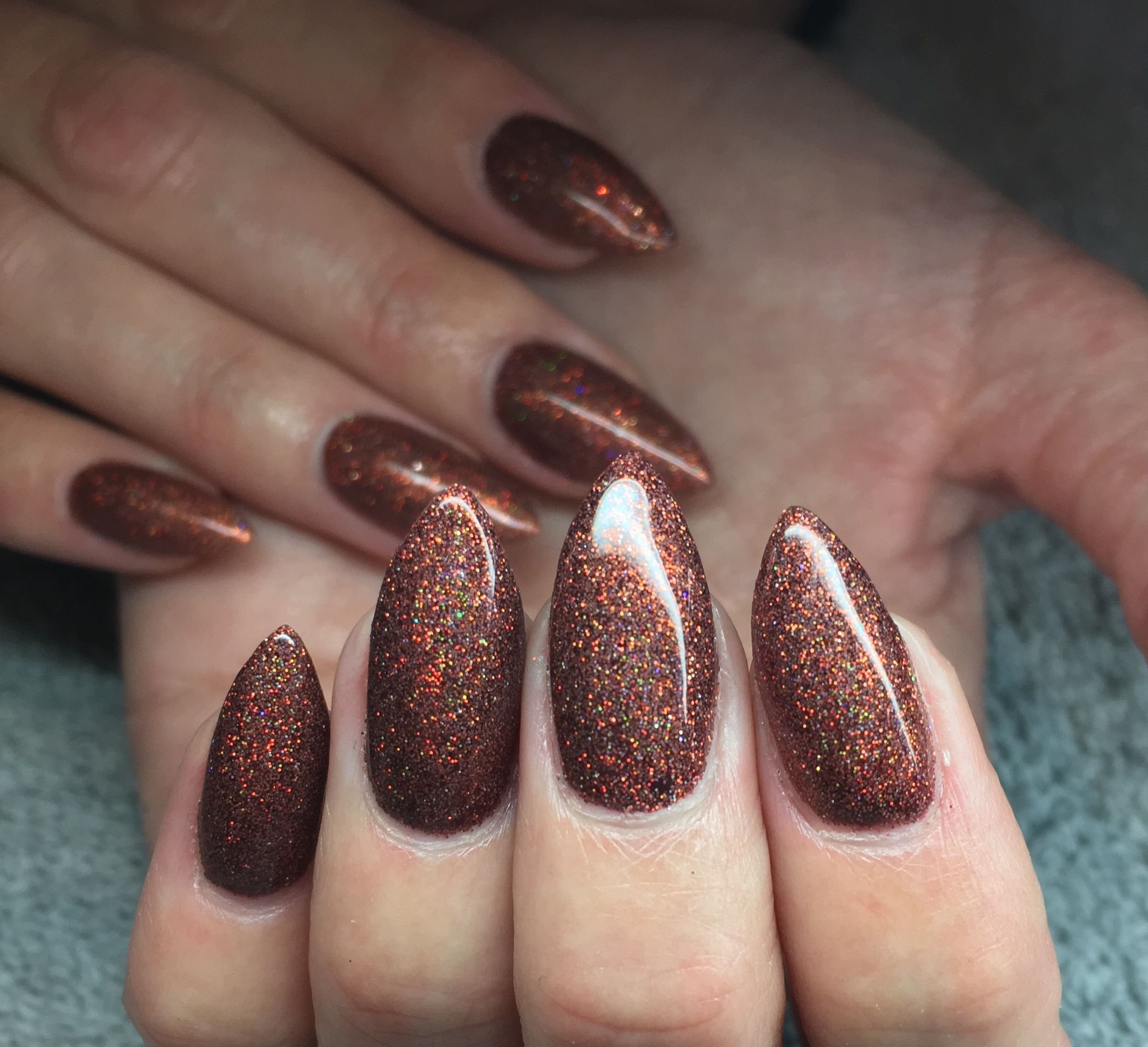 Коричневый маникюр с золотом на миндалевидных ногтях (43 фото)