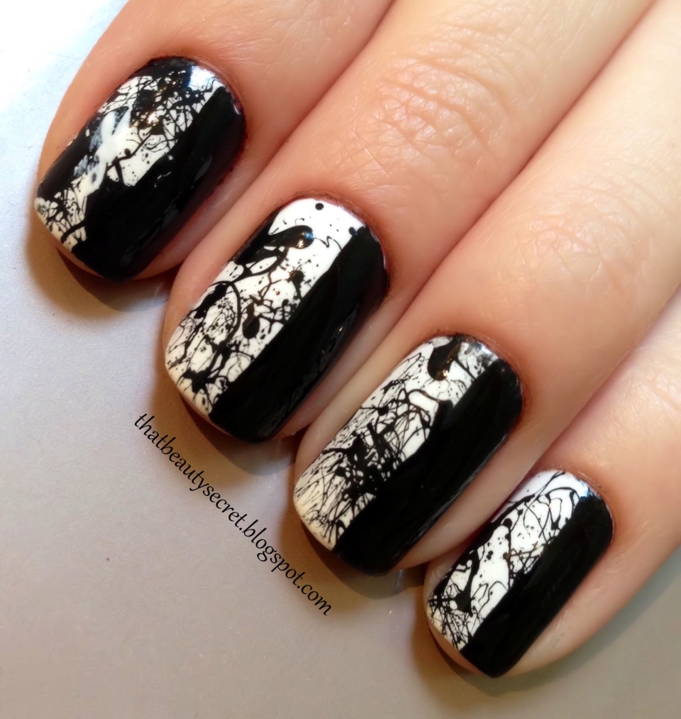 Маникюр с черными брызгами