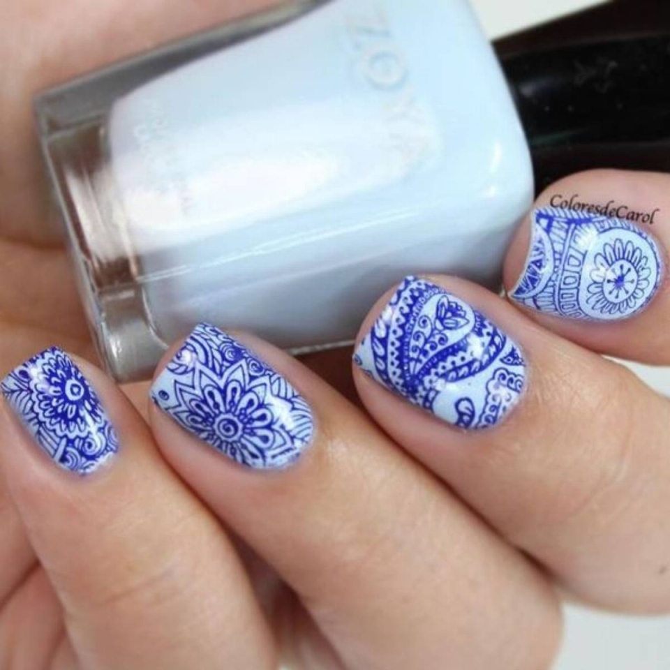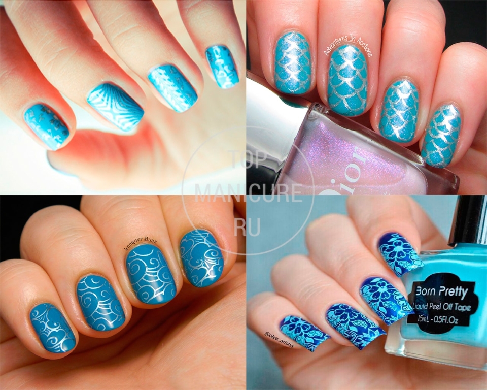 Голубой маникюр со стемпингом (65 фото)