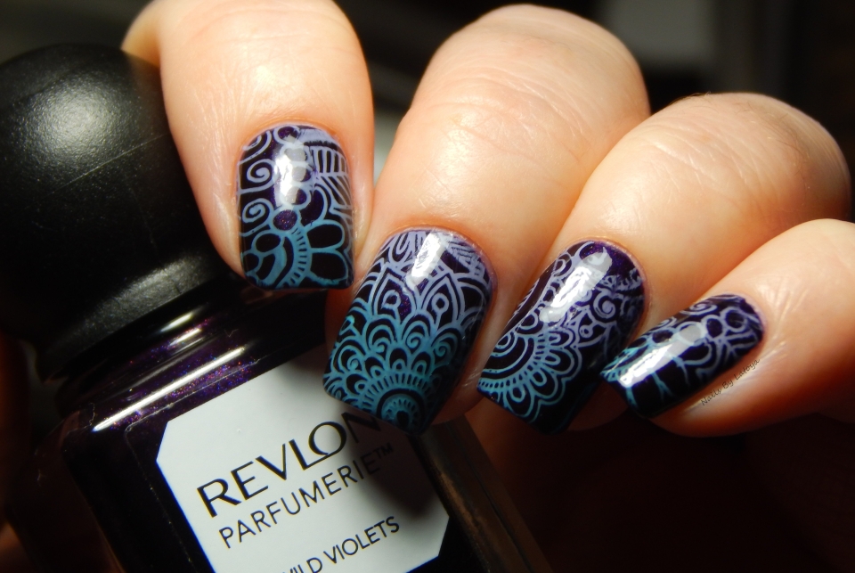 Стемпинг на голубом лаке