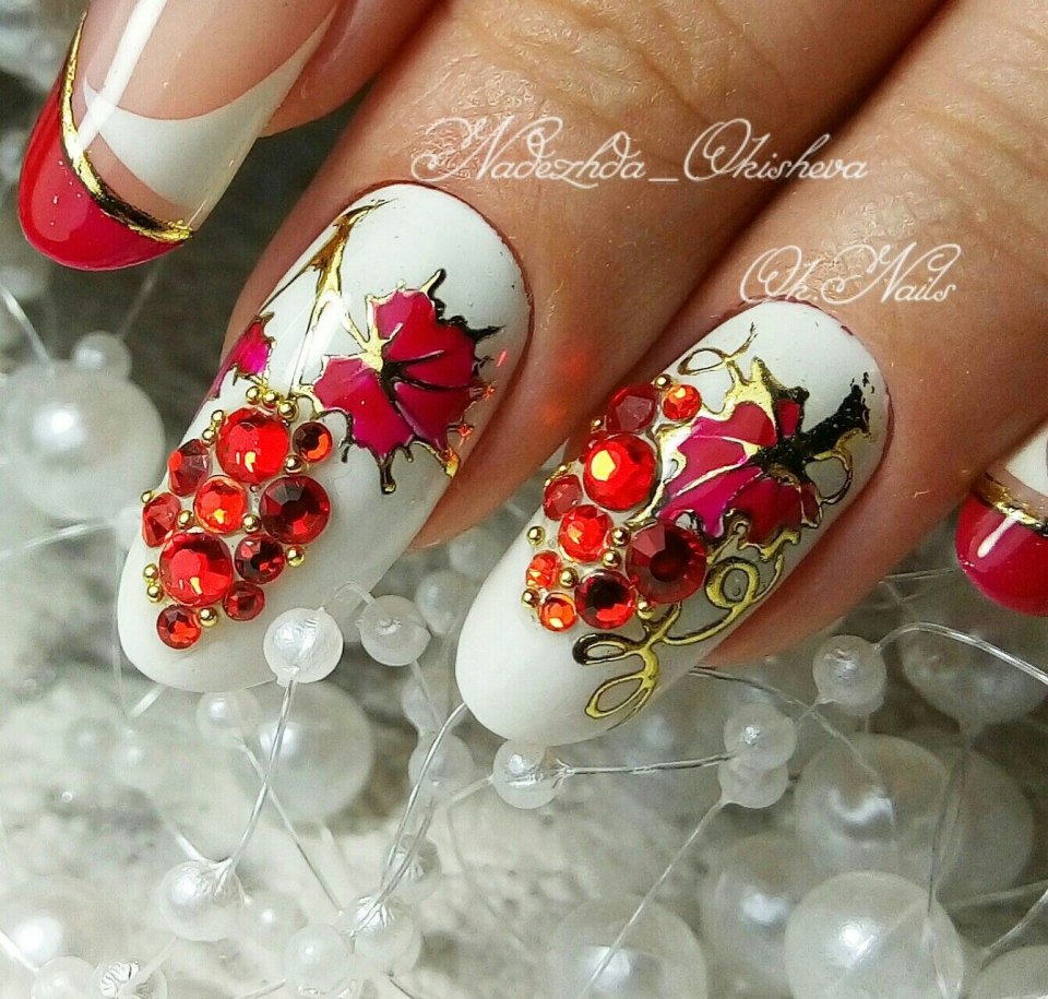 Осенний маникюр со стразами осенний дизайн (47 фото)