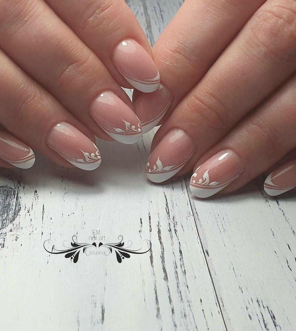 Френч маникюр на короткие ногти овальной формы с дизайном (37 фото)