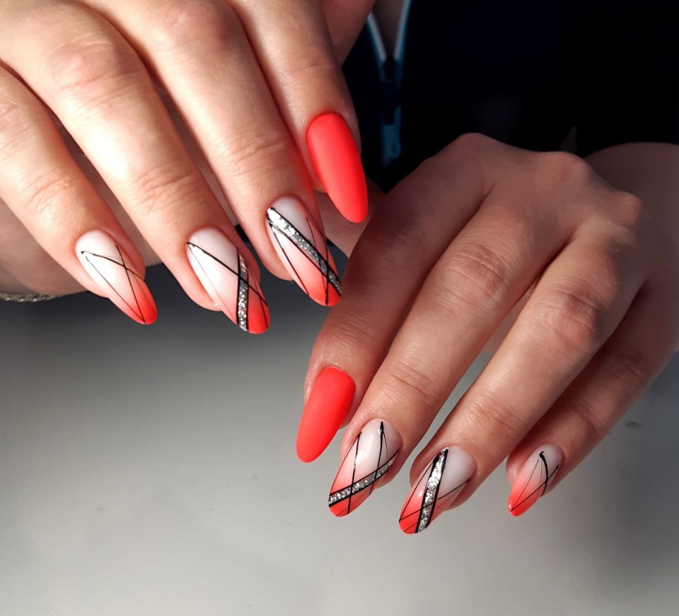 Френч на ногтях 2020 осень с геометрическим рисунком