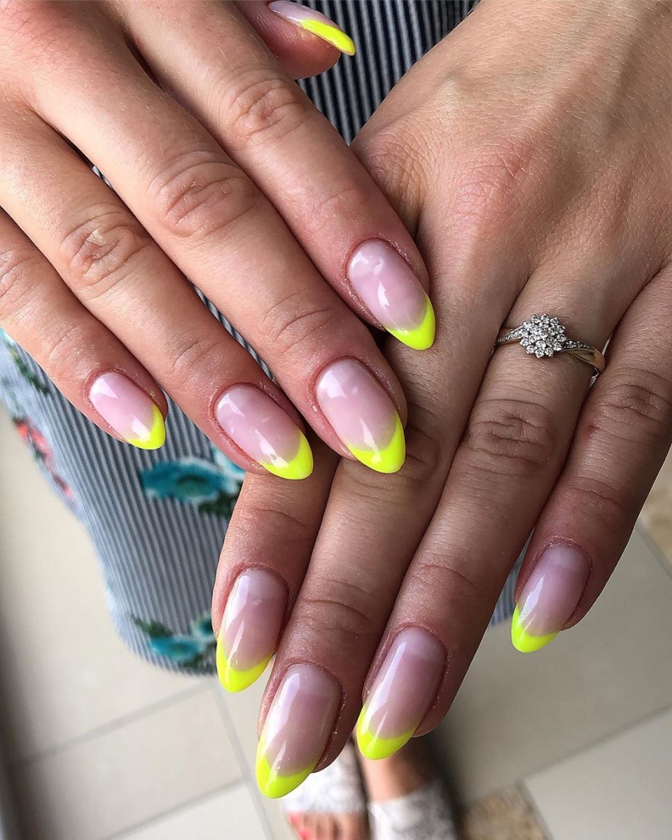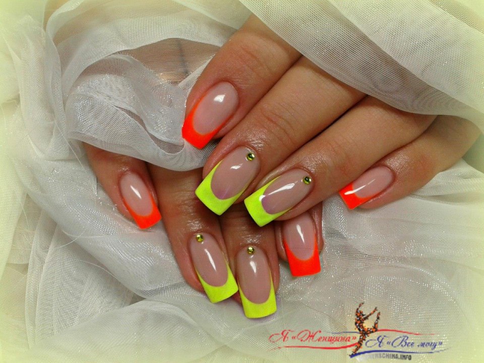 Маникюр френч цветной на овальные ногти лето (38 фото)