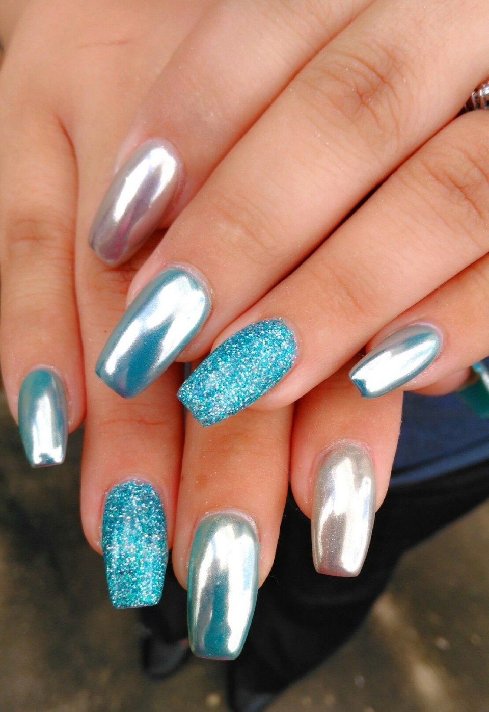 Ногти серебристые с голубым