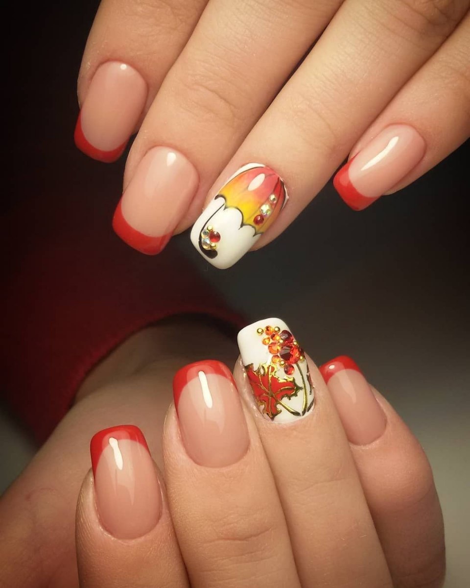 Осенний маникюр френч с рисунком квадратные (49 фото)